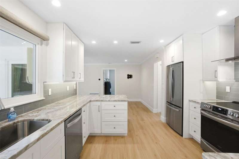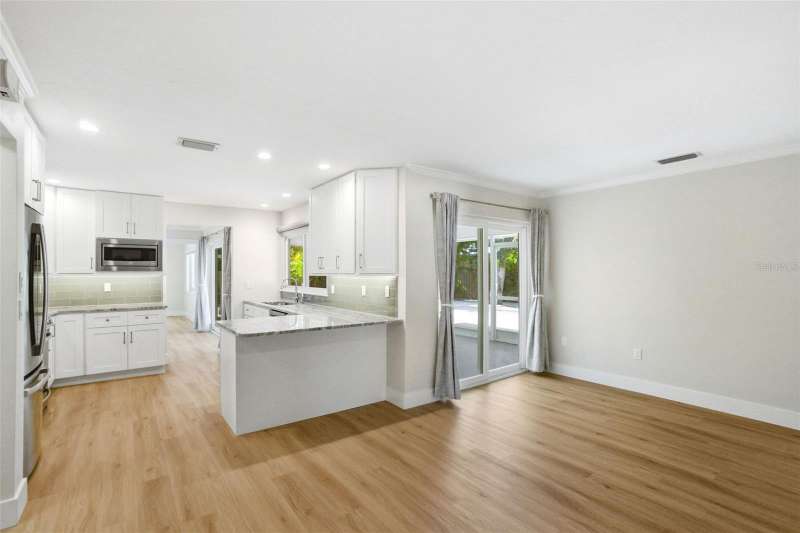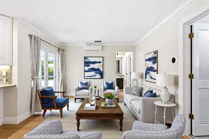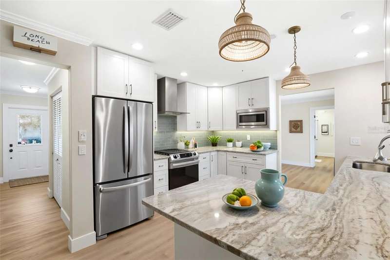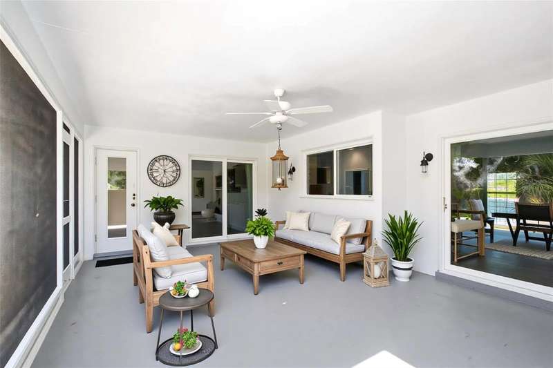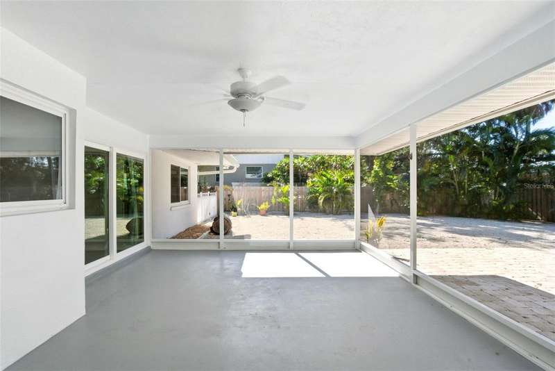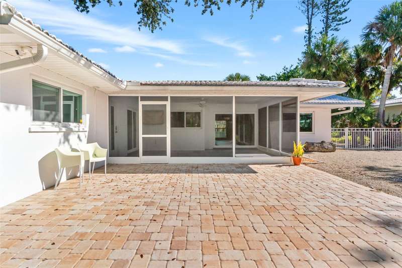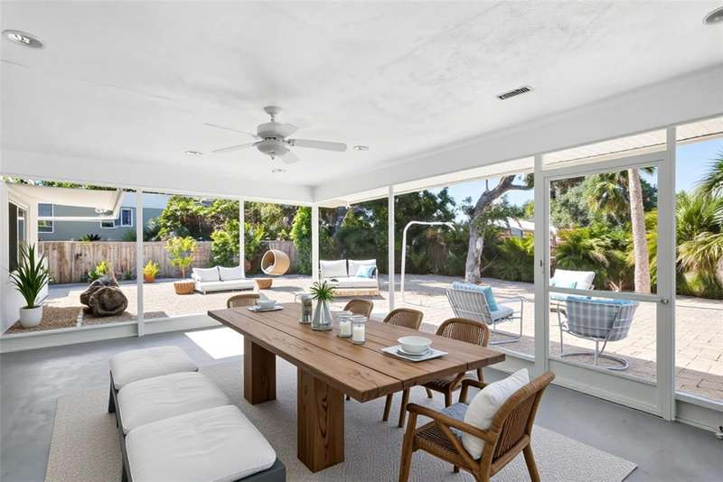 One or more photo(s) has been virtually staged. Nestled near the gentle waters of Roberts Bay, this enchanting Siesta Key home rests on a quiet cul de sac street where the only sounds are the whisper of palms and the laughter of neighbors walking by. Though not waterfront, the location captures the essence of island life — peaceful, private, and just moments from where the sun dips into the Gulf. A short stroll or quick bike or golf cart ride has you in the center of vibrant Siesta Key. Step inside, and you’ll feel the warmth of a home that’s been lovingly renewed. Every detail reflects care and comfort — from the four inviting bedrooms and two full baths to the light-filled kitchen adorned with stainless steel appliances and a captivating blue glass tile backsplash reminiscent of the Gulf waters just moments from your front door. The dining area invites long, easy meals, while two separate living spaces offer versatility for gathering, relaxing, or simply enjoying the rhythm of coastal living. Life is low maintenance and carefree with durable lvp flooring that looks modern and will compliment your coastal décor. Beyond the back door lies a spacious, fenced yard — a blank canvas waiting for your imagination. Picture a pool glimmering under the afternoon sun, a lush garden framed with tropical blooms, or a firepit where evenings stretch into starlit conversations. Here, you aren’t confined to someone else’s vision — you have the freedom to create your own perfect oasis suited to your tastes and dreamy outdoor vibe. The charming front porch welcomes your guests — a cheerful prelude to the life that awaits within. New hurricane-rated windows offer confidence and calm, while the spacious two-car garage with smart epoxy flooring and the generous, indoor laundry room offers convenience. This is more than a house; it’s a fresh beginning on Siesta Key — a place where your coastal dream can take root.