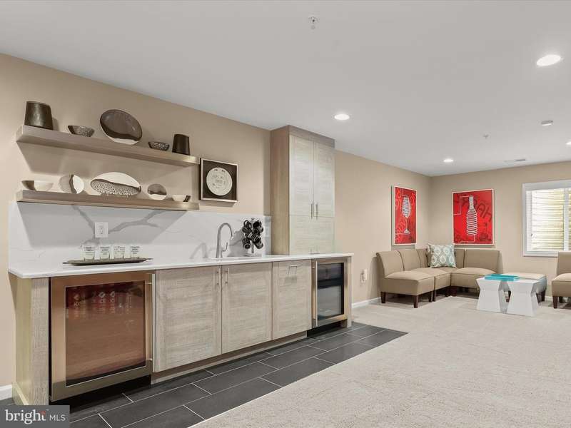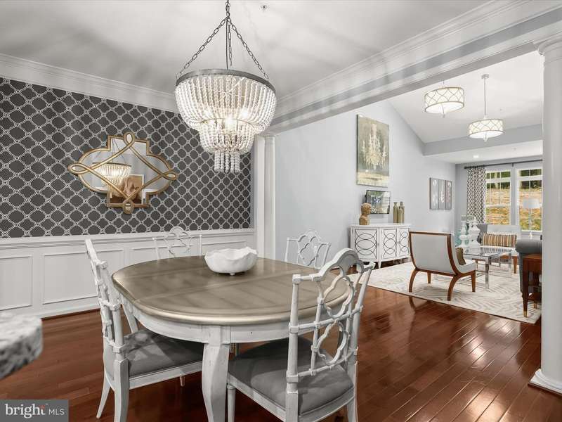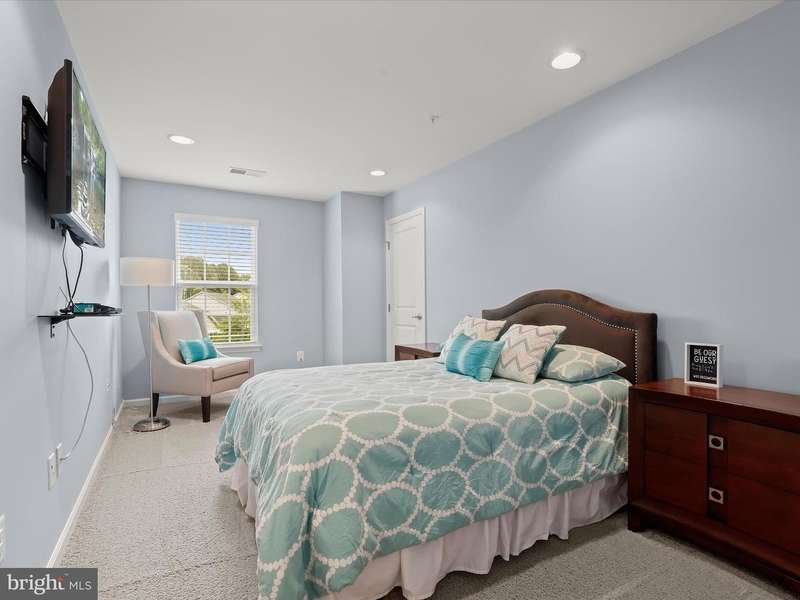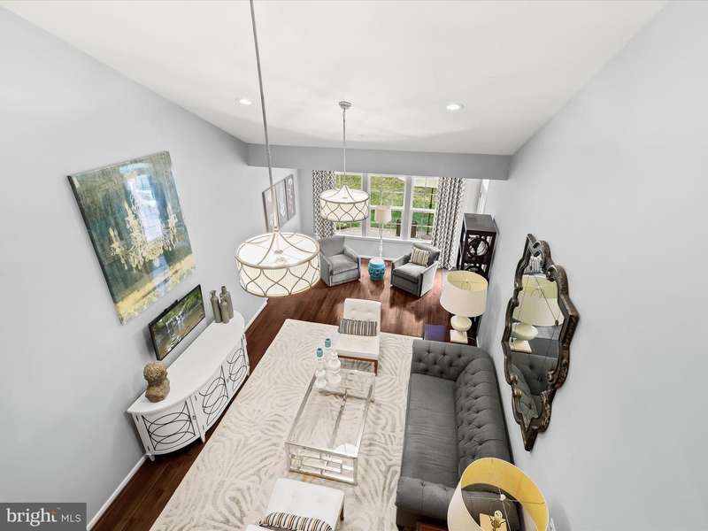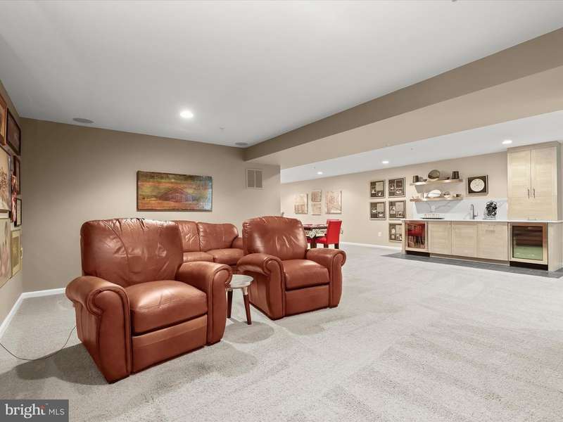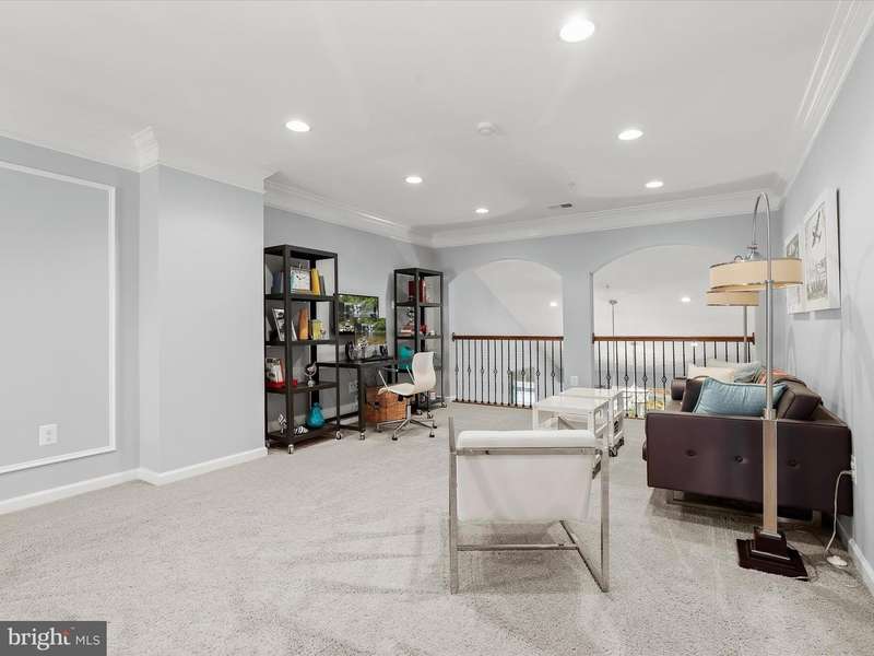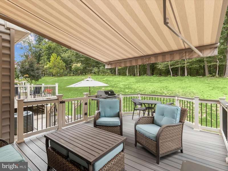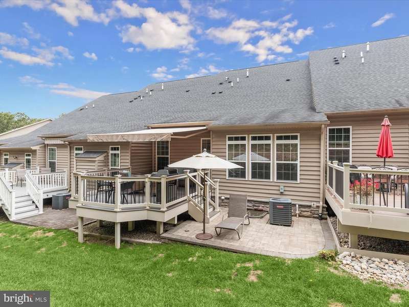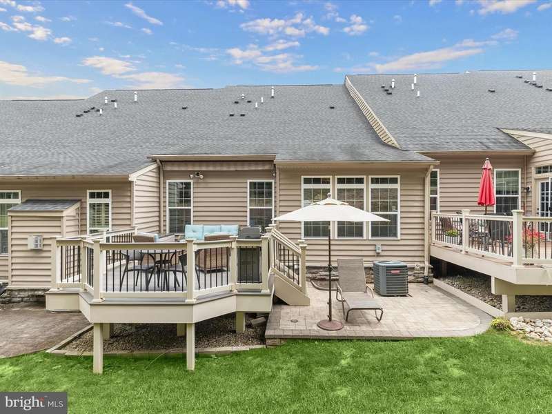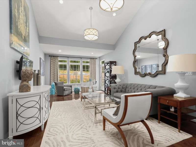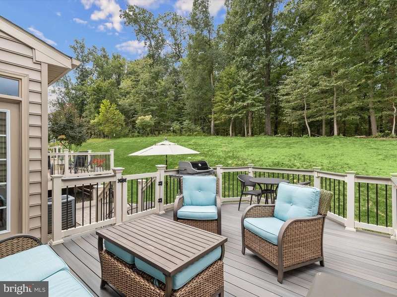 Welcome to Waverly Woods West, a premier 55+ active adult community where lifestyle, comfort, and convenience come together. This vibrant neighborhood features a spacious clubhouse with gathering areas, a fitness center, and an outdoor pool, all set against a backdrop of beautifully maintained walking trails that weave throughout the community. Situated in the newest and final set of villas built here, this elegant three-level residence offers sophistication and thoughtful upgrades throughout, and it is among the rare few backing to serene forest conservation. Meticulously maintained by its original owners, the home greets you with upgraded hardwood flooring, designer lighting, upgraded security system and refined crown molding. A graceful staircase showcases iron balusters, custom picture frame molding, and a wool runner, setting the tone for the quality within. The open-concept main level begins with a kitchen designed for both beauty and function, featuring off-white glazed cabinetry for warmth and dimension with pull-out shelving, granite counters, and two islands, one for prep and the other with a breakfast bar. Stainless steel appliances include a gas cooktop and double wall ovens, complemented by a new Italian tile backsplash installed in 2024 and a convenient pantry. Adjacent, the dining area glows beneath an upgraded tiered wood bead chandelier, flowing seamlessly into the living room with its soaring two-story vaulted ceiling. Here, two oversized drum pendant lights suspend elegantly from above, drawing the eye upward while adding warmth and contemporary style to the room. A dramatic wall of windows fills the space with natural light, and a glass door opens to the custom composite deck. The main-level primary suite offers a tranquil retreat with hardwoods added in 2024, crown molding, and a ceiling fan. The en-suite bath boasts a granite-topped double vanity, tiled shower, and a walk-in closet with custom built-ins and display cabinetry. Off the kitchen, the laundry room offers garage access and is conveniently located near a main-level half bath for guests. Upstairs, a generous loft overlooks the living area, joined by two spacious bedrooms, each with a walk-in closet and recessed lighting. A full bath with double sinks and a separate water room with the shower serves this level, along with a versatile bonus room ideal for storage or a study. The lower level is crafted for entertaining, with a custom wet bar featuring quartz counters, concealed storage for coffee or beverage stations, stainless shelving, a black granite bar sink, and two U-Line refrigerators for wine and beverages. Adjacent, a media room with surround sound further enhances the space and makes a perfect venue for at-home movie nights. This level also includes a half bath and a large storage room. Outdoor living shines with a low-maintenance composite deck framed by vinyl railings and a nearly full-length motorized awning, plus a stone patio, both with peaceful tree views. Additionally, finished two-car garage is equipped with dual Tesla chargers, while professionally tinted windows and six conveying TVs inside enhance both comfort and value. This home pairs exceptional craftsmanship with a premier setting, offering a rare opportunity to enjoy the very best of Waverly Woods West. Almost all home furnishings and accessories are available for sale - inquire thru the listing agent!