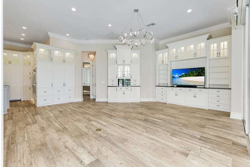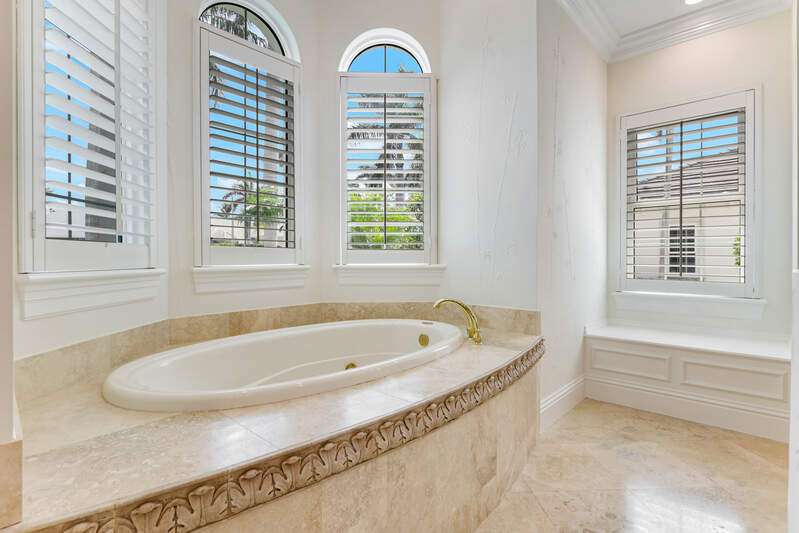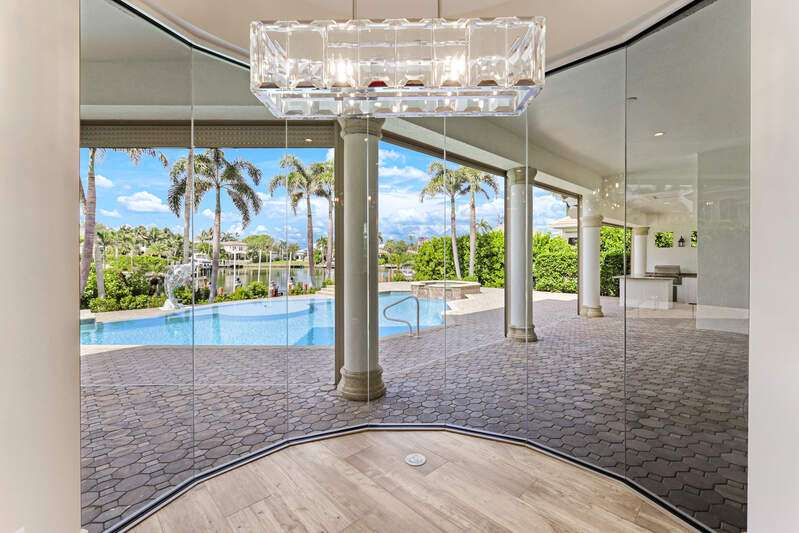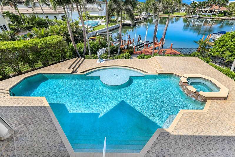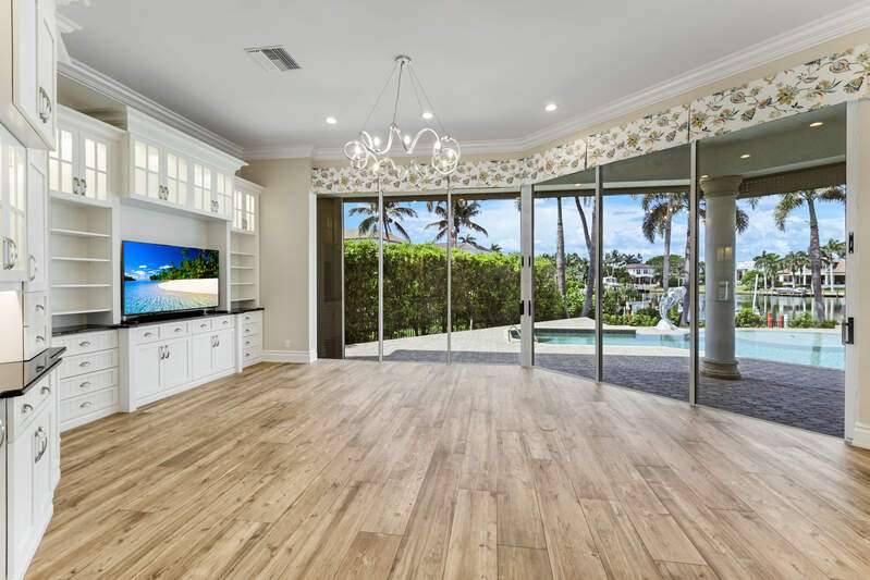 As you step into the formal living room, you're greeted by awe-inspiring water views framed by floor-to-ceiling windows, complemented by a cozy gas fireplace. Enjoy spectacular sunsets from your new residence in The Moorings, situated on .31 acres with southwest rear exposure on Compass Pass, where you'll find your boat dock with a lift that can accommodate a substantial-sized boat. Quick, direct Gulf access with one bridge is a boater's delight. Five bedrooms plus a den, a large bonus room, five and a half baths, as well as an oversized attached garage with a circular drive provide ample space for your car collection and street-legal golf cart. The generously sized family room, with pocketing sliding doors opening up to your amazing outdoor living space, will surely become a favorite spot for relaxing and enjoying time together. The sprawling master suite, with dual vanities, a jetted tub, walk-in shower, his-and-her custom closet systems, a separate library or den with beautiful French doors, and an additional first-floor en suite bedroom, offers ultimate comfort. Upstairs, you'll find three inviting bedrooms with custom closets and en suite baths, plus a pleasant bonus room with a wraparound balcony overlooking the fabulous pool and bay, perfect for a game room or media room. The grand gourmet kitchen, featuring a Thermador appliance package with a six-burner gas range and griddle, two dishwashers, a double wall oven, and a microwave drawer, is sure to excite any foodie. Dual Sub-Zero refrigeration, ample custom under-lit cabinetry with two islands, a fantastic oversized sink, and an ice maker make it perfect for entertaining. The impressive pool, with its expansive sundeck, jacuzzi, and summer kitchen, sits amid a beautifully landscaped, fully fenced backyard, ensuring privacy and security for your loved ones. Nestled on prestigious Mooring Line Drive, you're just moments away from Old Naples, the Venetian Village, Waterside Shops, and the exclusive Moorings private beach.
