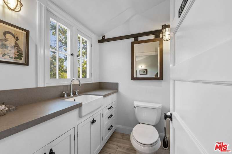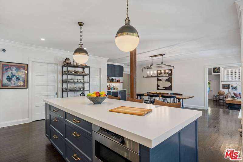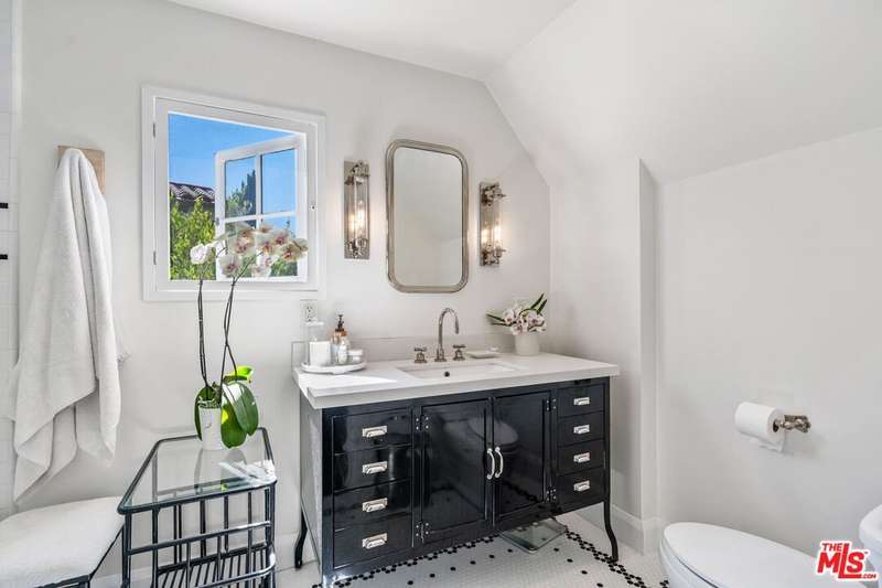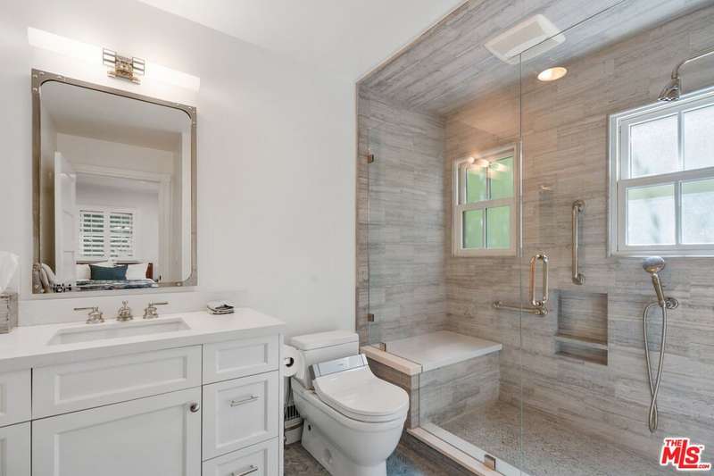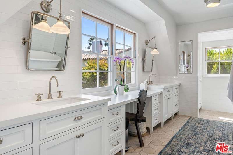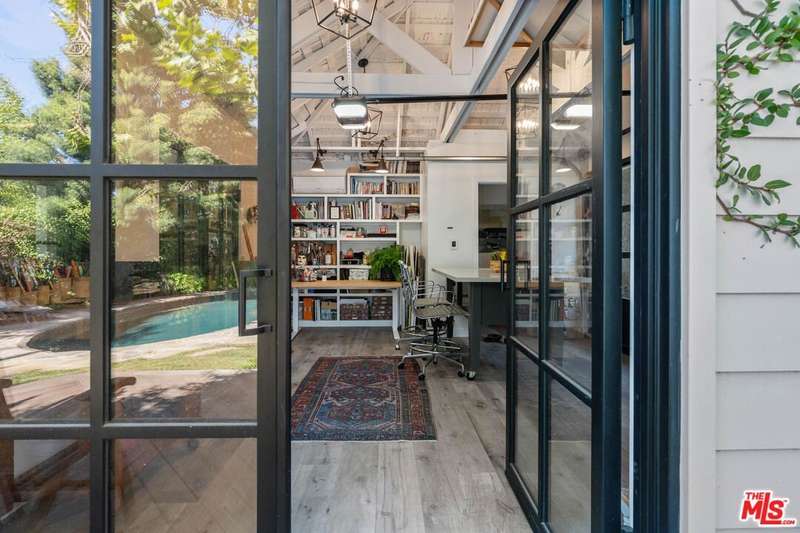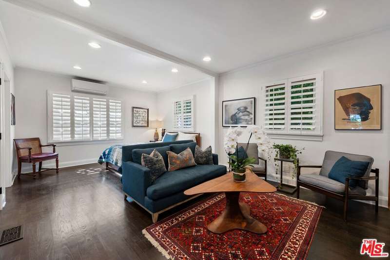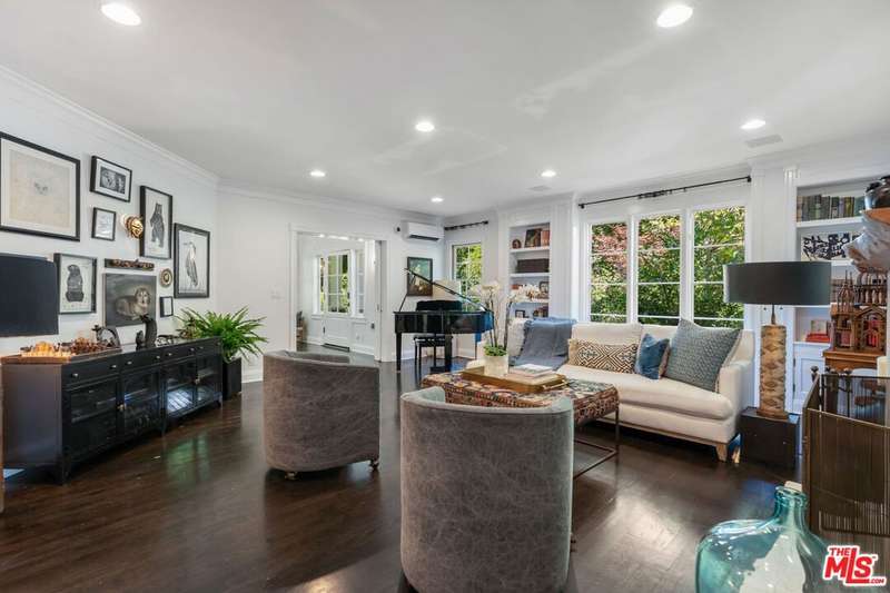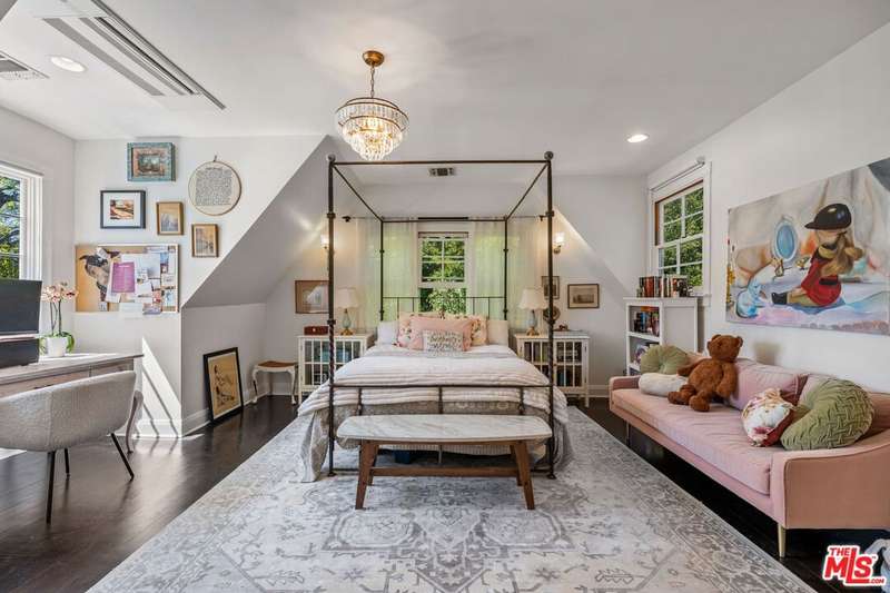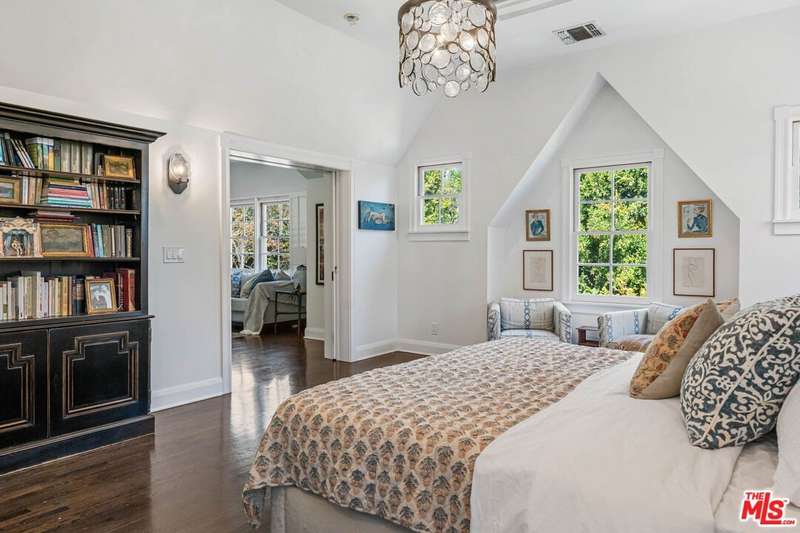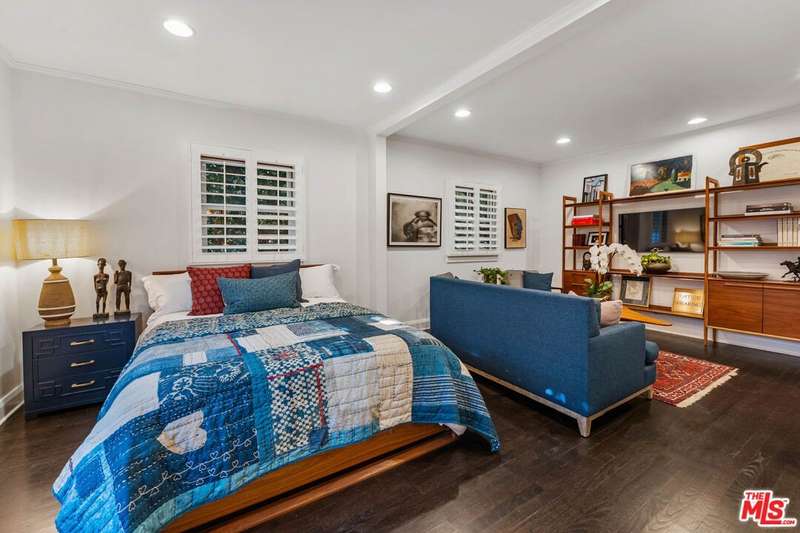 Set on an expansive and entirely flat corner lot south of Sunset Blvd, this beautifully updated 4-bedroom, 6-bathroom traditional offers unique floor plan, exceptional privacy, and timeless charm in one of Brentwood's most coveted neighborhoods. Surrounded by mature landscaping and tall hedges, the home enjoys a serene, tucked-away feel just moments from Brentwood's top shops, dining, and schools. Step inside to discover a home designed for both effortless living and elegant entertaining. The open chef's kitchen seamlessly flows into the inviting family room, creating a warm and welcoming heart of the home where conversations and gatherings come naturally. A separate, oversized formal living room exudes sophistication with its generous proportions, offering the perfect setting for cozy evenings by the fire or hosting guests in style. French doors spill out to a sun-kissed patio featuring an outdoor bar and built-in BBQ, ideal for memorable and laid-back afternoons soaking in the Southern California lifestyle. The spacious primary suite includes a generously sized adjoining room perfectly suited as a home office, nursery, or flexible fifth bedroom. This versatile space offers endless potential to adapt to your lifestyle needs. The backyard is a true retreat, featuring a large pool and spa, elegant hardscaping, and generous areas for lounging and dining al fresco. A detached creative studio with its own bathroom provides endless flexibility ideal for a guest suite, office, or art space. The finished garage currently functions as a home gym. and the existing layout allows for the easy addition of a fifth bedroom if desired. A rare opportunity to own a classic Brentwood residence with incredible privacy, scale, and versatility on one of the neighborhood's most desirable corner lots.