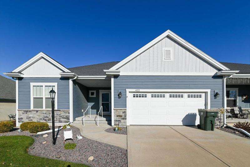 Beautiful 3 bedroom, zero lot line 1/2 duplex ranch home. Enjoy the many upgrades added to this custom home. Solid double wall between the homes for superior sound deadening. Beautiful upgraded kitchen with quartz tops, built-in dinette wine & serving station, large breakfast bar, stainless appliances, tons of cabinets & custom box/tray ceilings w/custom paint. Other features include a drop zone in rear foyer, laundry cabinetry, washer, dryer, Luxury vinyl plank floors, gas fireplace, raised bathroom sinks, walk in shower, white arch doors & exposed lower level for future expansion! A must see. No condo association dues, only HOA dues of 200/year. No city sidewalks to shovel!