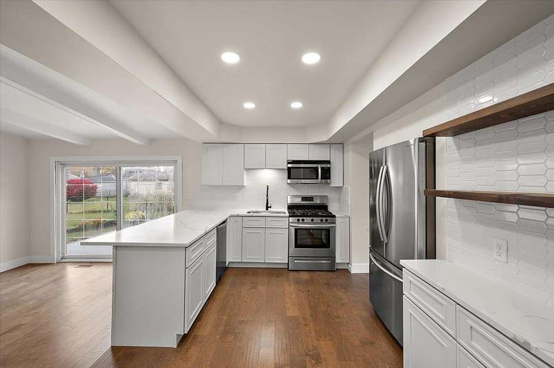 This beautifully renovated, move-in ready home has been transformed from top to bottom and is sure to impress even the most discerning buyer! From the moment you arrive, the impeccable curb appeal sets the tone for what awaits inside. Step through the front door into a bright living area filled with natural light and a cozy, inviting atmosphere that instantly makes you feel at home. The family room features a striking fireplace and soaring, beamed ceilings, with access to a newly poured concrete patio, an ideal space for entertaining and enjoying views of the extra-deep lot. Open to the family room is the beautifully renovated designer kitchen. Featuring soft-close custom cabinetry, sleek quartz countertops, and premium finishes throughout, this space is sure to offer an exceptional cooking experience. Every detail of this home has been thoughtfully updated, from the new flooring and modern lighting to the tastefully remodeled bathrooms with contemporary fixtures. The modernized lower level adds even more versatility with a brand-new kitchenette. Additional upgrades include a new roof, new driveway, and added attic insulation, providing comfort and peace of mind for years to come. Perfectly located near top-rated schools, parks, golf courses, and the M-59 corridor, this home combines style, comfort, and convenience. Schedule your private showing today and experience modern living at its finest. Agent is related to seller.