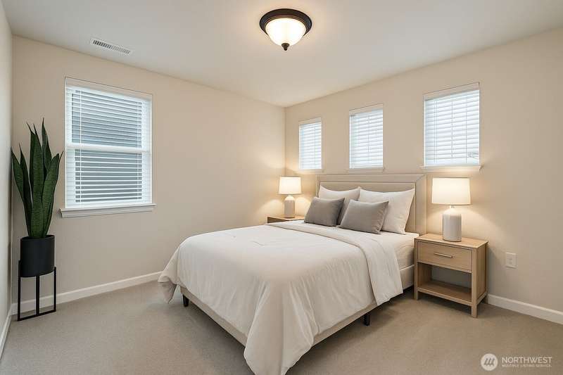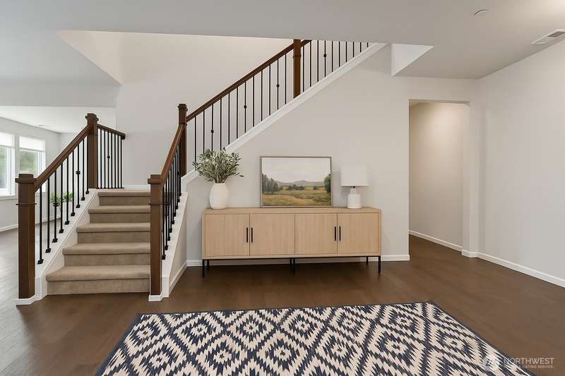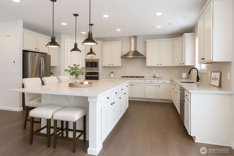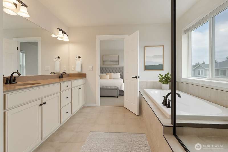 Welcome to this beautiful Craftsman by Richmond American Homes in the desirable Tehaleh community. The main level offers a dining area, well-appointed kitchen with copper-brushed hardware that carries throughout the home, and a spacious living room with a large island—perfect for entertaining. Main-level holds a bedroom, shared bathroom and provides access to the spacious 3-car garage. Upstairs features three bedrooms, a loft, laundry room, and a luxurious primary suite with dual walk-in closets, double sinks, and a soaking tub. Stay cool with the central AC or on the covered patio overlooking a beautifully landscaped backyard w/ delightful raspberry shrubs! (Some photos are virtually staged)