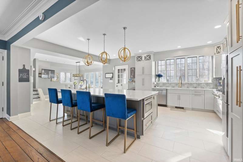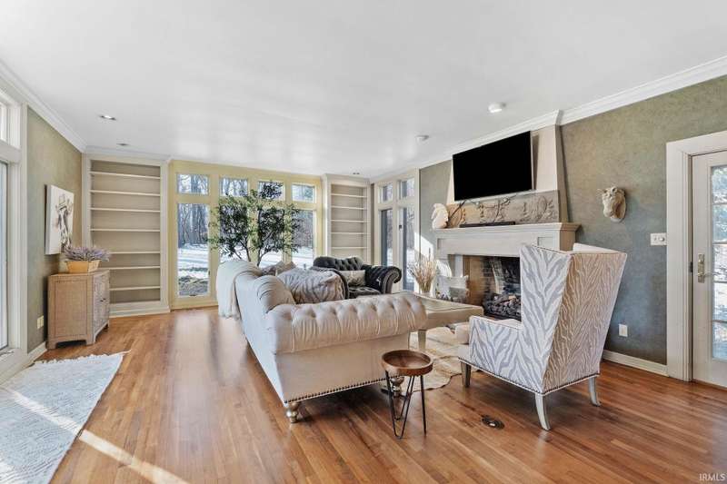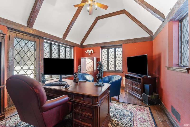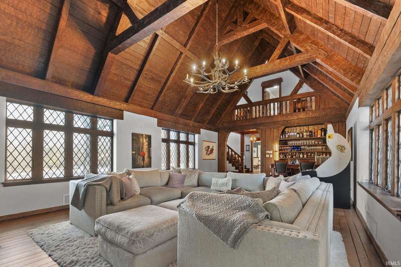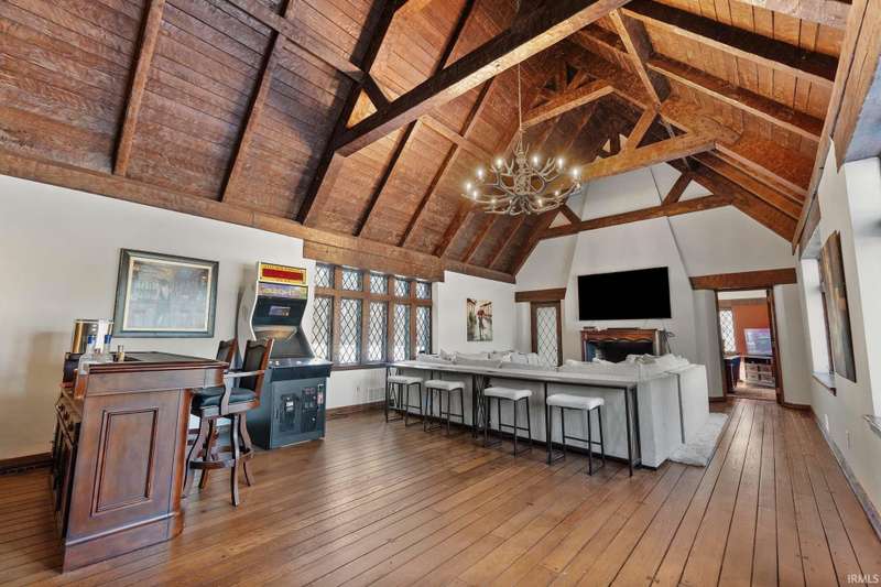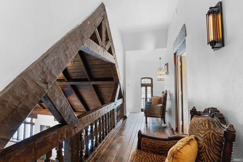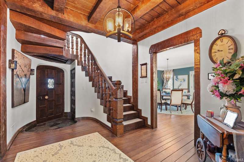 A Home with History, Privacy, and Unmatched Character Nestled on approximately 9 serene acres, this remarkable home tells a story as rich as its surroundings. Built in 1933 as a wedding gift from William Noll (of Noll Pharmaceuticals and Pinex) to his son, this residence showcases rare craftsmanship from an era when few homes were built. Hand-adzed timbers were brought to the site, and every door and window was custom-made on location. With only four owners since its construction, the current residents have lovingly maintained and remodeled it for all of today's conveniences yet with yesterdays charm. The previous owner expanded the home, adding a spacious family room and a primary suite. At that time, the house was updated with new plumbing and electrical systems, along with a three-car garage, loft, and pool house. Privacy is paramount here. From nearly every vantage point, no other homes are visible—yet this oasis sits within city limits. Once described as a bird sanctuary, the estate is just minutes from I-69, the airport, top hospitals, Jefferson Pointe, Canterbury School, Fort Wayne Country Club, and downtown. Built in the Norman style, the home boasts a reinforced concrete foundation, striking oak beams filled with brick, and elegant oak plank flooring all re-done in most rooms. The spacious remodeled kitchen is designed for both functionality and gatherings, featuring an adjoining family dining area and a formal dining room. All updated appliances with additional refrigerators in the mudroom and basement. Zoned heating and cooling ensure year-round comfort, with three gas furnaces plus an electric furnace dedicated to the home office. High-speed FIOS fiber-optic connectivity provides seamless broadband and streaming capability. The 200-square-foot home office also includes an extensive library. Approximately 3 acres of manicured lawn transition into natural wooded surroundings, creating a peaceful escape. The house sits 200 yards from the road, buffered by mature trees for privacy and tranquility. A shallow pond near the entrance was once used for fishing and ice skating, adding to the home's rich history and charm. All new asphalt. This is more than a home—it’s a legacy waiting for its next chapter.