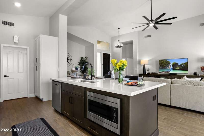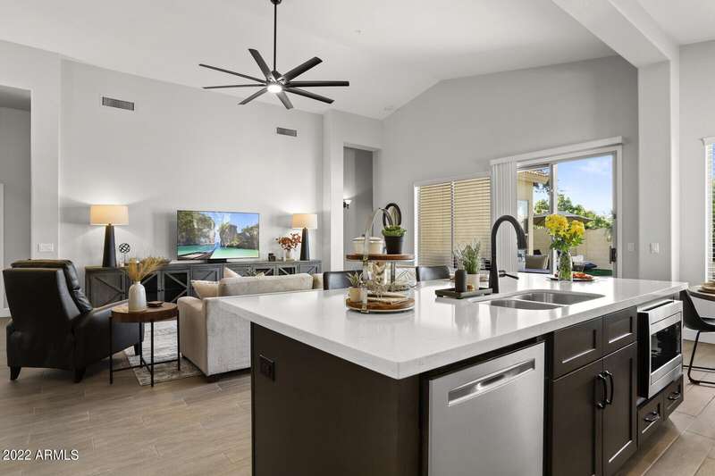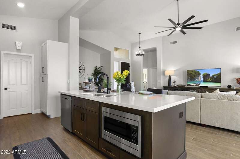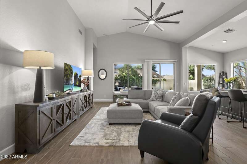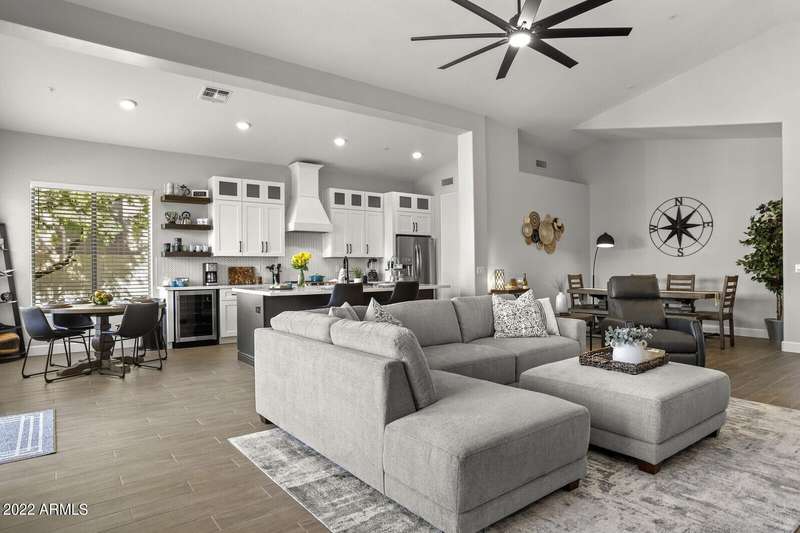 Fully Furnished Short-Term Rental in Grayhawk Resort Community Welcome to your ideal home away from home in the sought-after Grayhawk resort community. This beautifully remodeled residence is offered fully furnished and available for flexible short-term stays — from a few weeks to a few months. Rates vary based on length of stay and season. Step inside to soaring vaulted ceilings and a bright, open floor plan that flows effortlessly to the private, south-facing pool — perfect for relaxing or entertaining. The home was fully renovated in 2020, featuring modern flooring, a designer kitchen with high-end appliances, custom cabinetry, stylish lighting, and updated bathrooms throughout. Enjoy cold central air and ultra-quiet ceiling fans in every room. The home includes four new TVs: two matching 65" Samsung NEO QLEDs in the main living space and primary suite, and two 43" LG TVs in the guest bedrooms. You'll also find a new, high-efficiency LG ThinQ washer/dryer, along with comfortable, quality indoor and outdoor furnishings throughout the property. Whether you're here for business, a getaway, or in between moves, this luxury home offers a seamless and stylish living experience.
