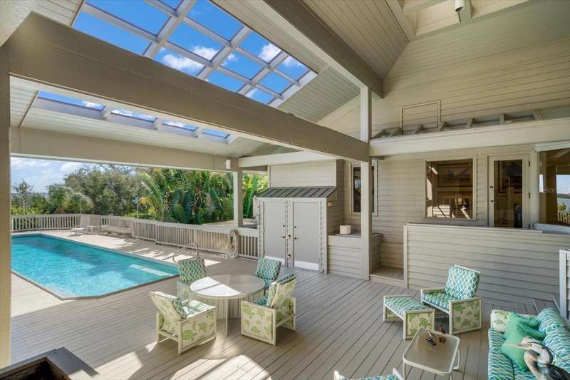 An opportunity of this caliber rarely presents itself on the west coast of Florida, 1198 Mandalay Point represents extraordinary value for one of the state's most exclusive waterfront properties. Set on 42.57 acres at the secluded northern tip of Clearwater Beach, this remarkable beach to bay property is the last and only private residence of its kind. Bordered on the north by the untouched beauty of Caladesi Island State Park and accessible by a private road, the estate offers unmatched tranquility with miles of pristine beach. For the yachting enthusiasts, a rare deep-water dock accommodates vessels up to 80 feet, providing direct access to the Intracoastal Waterway and the Gulf of America for effortless cruising, fishing and island hopping. This is more than a home - it is a private sanctuary, a lifestyle investment, and a generational legacy. With its protected setting, private entrance, and rare beach-to-bay frontage, 1198 Mandalay Point stands alone as the crown jewel of Clearwater Beach real estate. The 3,434 square foot residence is elevated 20 feet above sea level to showcase panoramic Gulf to Bay views. Inside, soaring 30 plus foot ceilings crown an atrium with a heated lap pool, overlooking the lush preserves of the south end of Caladesi Island, Malone and Moonshine Islands. Each room frames views of sunrises, sunsets and importantly - 360 degrees of palm trees, sandy beaches, the gulf and the bay. Whether entertaining guests or enjoying quiet moments, this home provides an unparalleled living experience. From its tranquil setting and proximity to Tampa International Airport to its world-class dockage and breathtaking natural beauty, 1198 Mandalay Point offers everything you need to enjoy the best of Florida living. An exceptional offering.