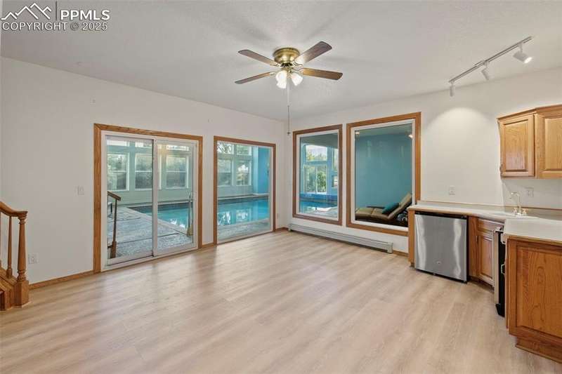 Discover the perfect blend of luxury, comfort, and location in this extraordinary Colorado home, ideally situated on a private cul-de-sac in the highly desirable neighborhood. From the moment you arrive, you’ll be enchanted by the panoramic Mountain Views, frequent visits from wildlife, & the serenity of a 3/4-acre lot backing to protected open space. With top-rated schools, shopping centers, & endless hiking trails at Ute Valley Park nearby, this property offers both convenience & a true connection to nature. Step inside to soaring ceilings, sun-drenched floor-to-ceiling windows, & gleaming hardwood floors that flow seamlessly through the main living areas. The expansive, open design is tailor-made for entertaining, featuring a grand formal dining room & a chef-inspired kitchen where a gas cooktop set in the center island becomes the centerpiece for gatherings & serve-yourself-style parties. The primary suite is a light-filled sanctuary, boasting several oversized windows, two walk-in closets, & a spa-like five-piece ensuite. Upstairs, a second oversized bedroom with its own ensuite bath & private sitting room provides flexibility for a guest suite, in-law quarters, or office retreat. A true showpiece of this home is the indoor swimming pool, complete with a UV light cleaning system, heating capability, & floor-to-ceiling windows that frame breathtaking Mountain Views. With its own attached bathroom & changing room, the pool space feels like a private year-round resort. Outdoor living is equally captivating, with a wraparound porch & a remote-controlled awning that create the perfect setting for morning coffee, shaded afternoons, & sunset evenings. The backyard is designed for fun & relaxation, featuring a children’s play structure, a basketball hoop with a paved court, & endless space to explore. Additional features include an automatic sprinkler system, central air conditioning, & a whole-house fan. The community itself offers tennis courts & friendly neighbors.