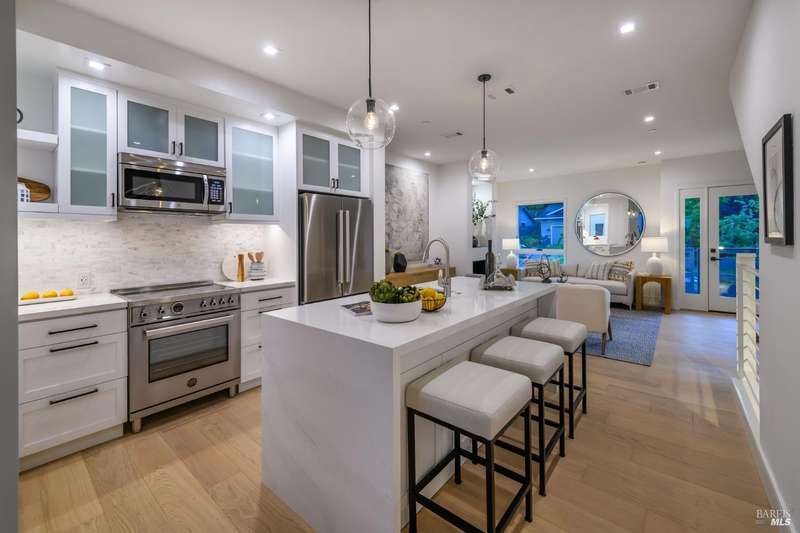 These impeccable townhomes offer a blend of modern luxury, thoughtful design & utmost in comfort in a world-class region, a rare opportunity not to be missed. The sophisticated, stylish residences feature thoughtful floor plans, modern finishes & an abundance of natural light. Wide-plank European white oak flooring lends elegance to the interior. An open concept kitchen hosts stainless steel appliances centered around a dining island with waterfall edges ready for today's home chef. The third level houses the primary suite & guest bedroom. The primary suite includes a pair of closets & en-suite spa-like bathroom featuring an angled Porcelanosa snow-white dual vanity countertop, Carrara Venato honed porcelain wall & floor tile, Toto Acquia toilet, and California Faucet shower fixtures. Multiple outdoor living opportunities round out these homes. This new community consists of 14 homes in a serene setting in Napa. *Photos may be of a different unit with representative finishes