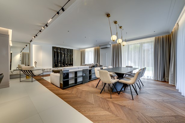 Unique Estates presents a luxurious five-bedroom house for sale, situated in one of Sofia's most prestigious gated communities in Simeonovo district. This exclusive complex is located at the foot of Vitosha Mountain, near key urban hubs, masterfully combining the convenience of city infrastructure with the tranquility and clean air of nature. The house is new and furnished according to a professional designer project, featuring high-quality materials, modern equipment, and rigorous attention to the smallest detail. The complex offers first-class amenities, including a playground, a running and walking track, a dog park, a sports field, and guest parking, along with 24-hour security and its own treatment plant, guaranteeing peace of mind, security, and a consistently high standard of living.Distribution:First level: Entrance hall, spacious living room with kitchenetteSecond level: Master bedroom with walk-in closet and en-suite bathroom, second bedroom with double bed, guest bedroom, study (possibility for an additional bedroom with a sofa bed), shared bathroomAttic space: Large bedroom with sofa and wardrobes Basement: Garage for four cars (plus two outdoor parking spaces), as well as service and storage rooms
