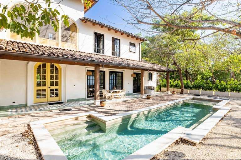 Discover Casa Las Mareas, a 4,835 sq ft beachfront villa in the exclusive Las Golondrinas community of Hacienda Pinilla. This Spanish Colonial-style residence offers 4 bedrooms, 3.5 bathrooms, a service suite, a private pool, and direct access to Playa Bonita. Designed with timeless architecture and upscale finishes, it provides elegant indoor-outdoor living across two floors, just steps from the sand. Enjoy a luxury lifestyle within one of Costa Rica's most prestigious gated communities.