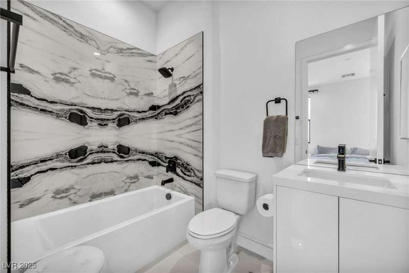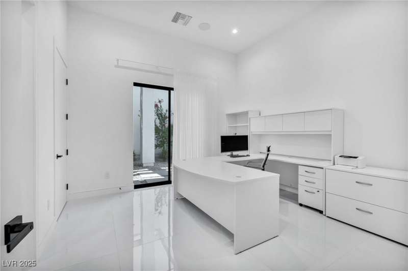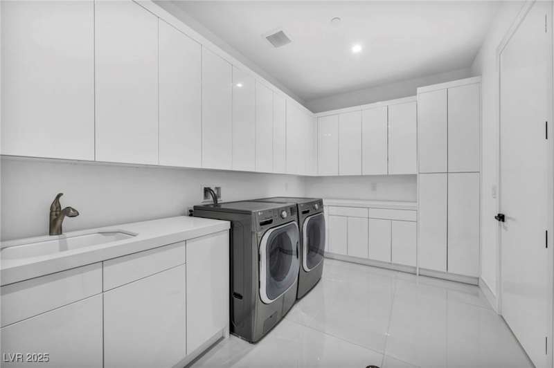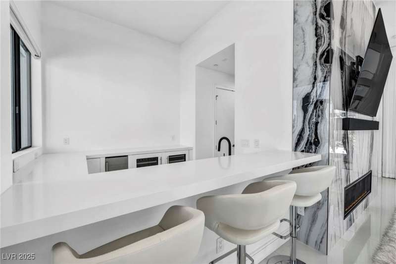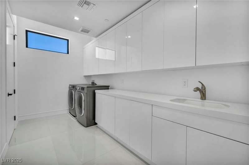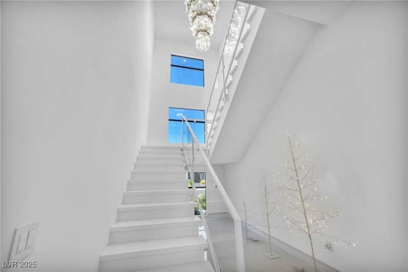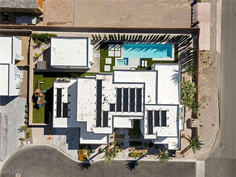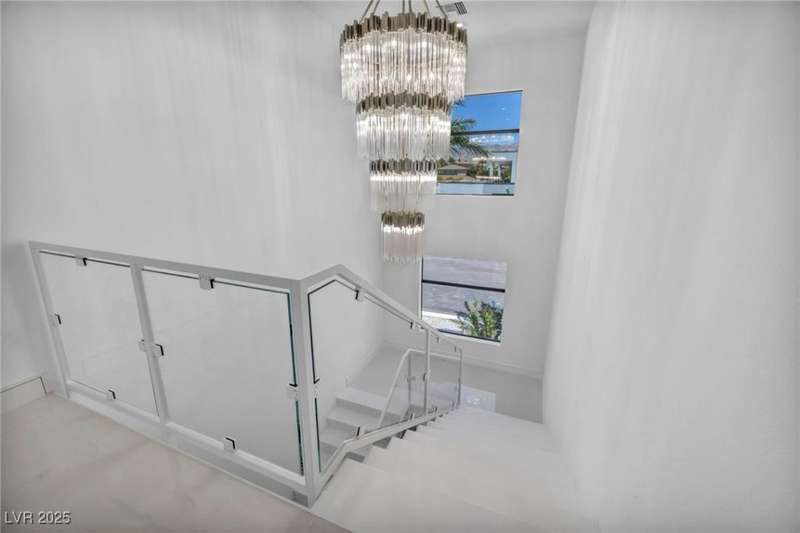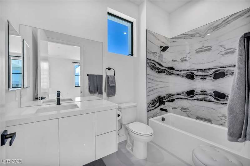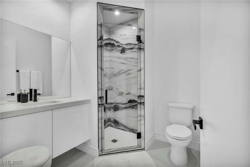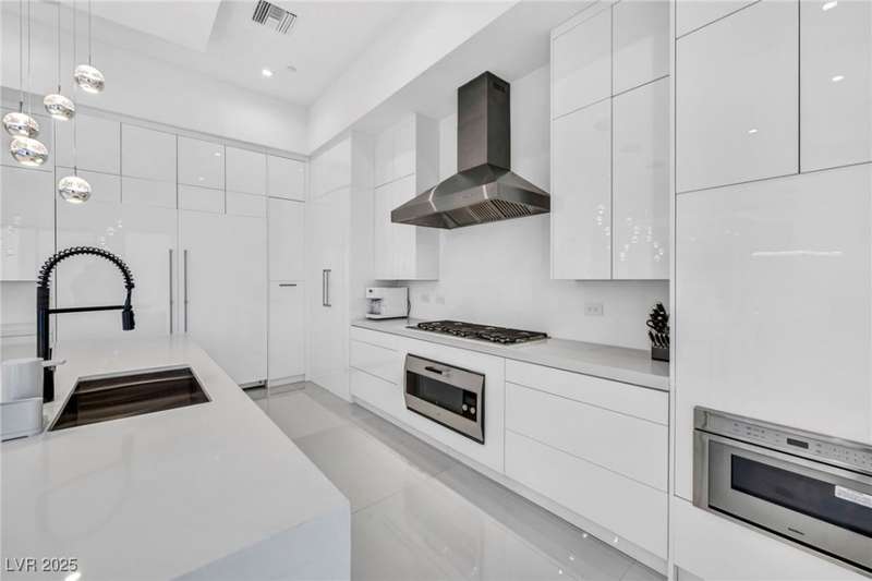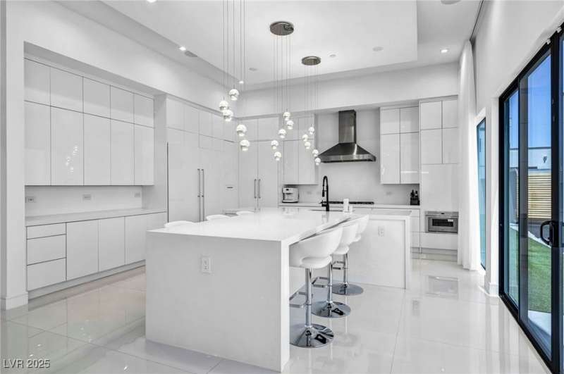 Experience resort-style luxury living in this custom estate spanning nearly 7,000 sq ft on a half-acre in NW Las Vegas. This architectural masterpiece blends clean contemporary lines with warm natural light, setting a new standard for refined desert living. The open-concept design flows effortlessly into multiple entertaining spaces, enhanced by sleek finishes and advanced smart-home technology. Gourmet kitchen has an expansive waterfall island, outfitted with professional-grade appliances and a hidden walk-in pantry. The primary suite features a private haven with a spa-inspired bath and 2 custom walk-in closets. Each additional bedroom is appointed with its own en-suite bath. Outdoors, the residence transforms into a resort setting. Meticulously landscaped grounds surround a heated pool and spa, complemented by a sauna and multiple lounging areas. From sunrise to sunset, every moment here is framed in luxury. This home?it's a statement of prestige, privacy, and modern elegance.