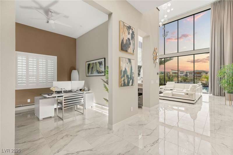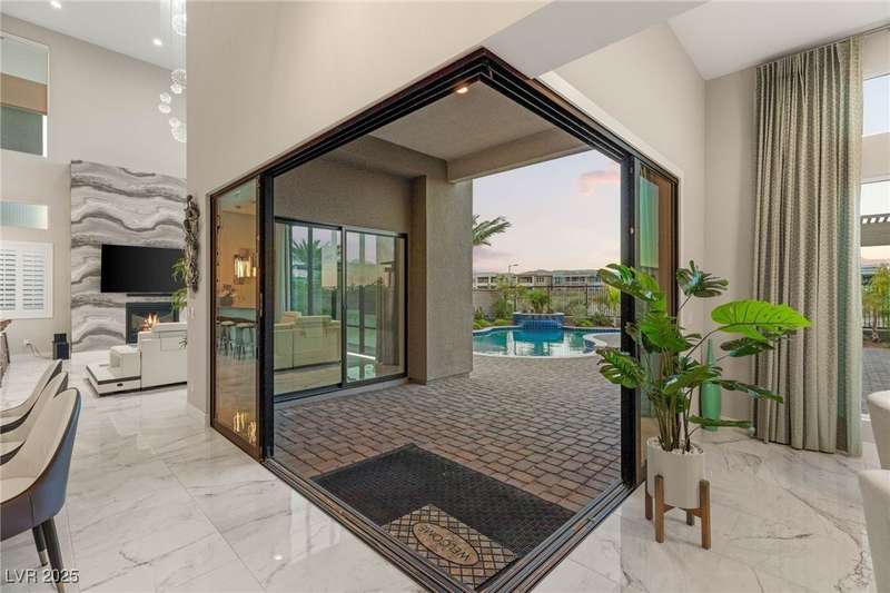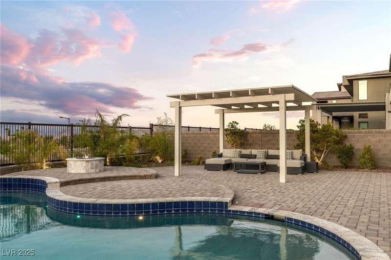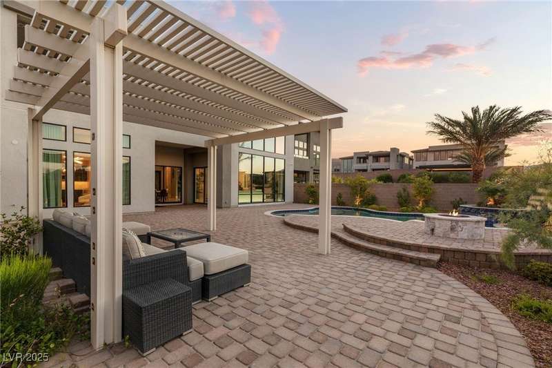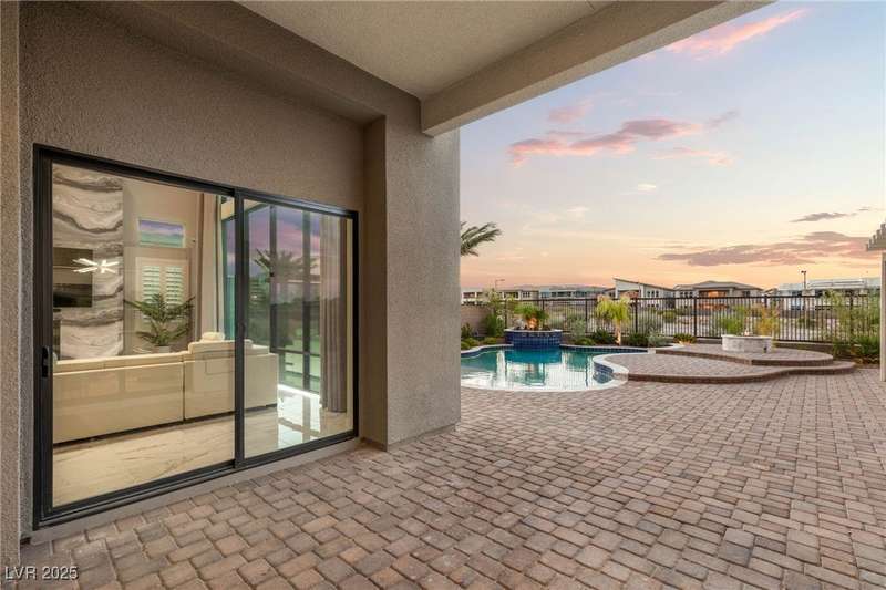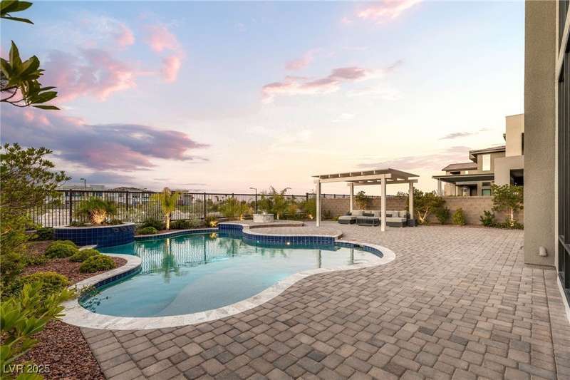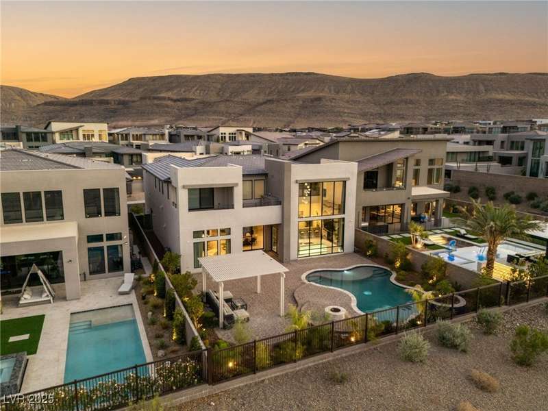 Welcome to the epitome of luxury living at 5201 Fading Sunset,located in guard-gated Mesa Ridge in Summerlin.This exquisite 4-bedroom, 4.5-bathroom + 3 car-garage residence,also features a multi-gen suite,ideally positioned on a premier lot, offering privacy and exclusivity. Designer finishes highlight every space, with vaulted ceilings & large windows that invite the home with natural light. Elegant marble and luxury vinyl plank flooring elevate the interior style. Enjoy unobstructed strip views & breathtaking mountain vistas as a stunning backdrop. Step outside to your own backyard oasis, featuring a tranquil pool that’s perfect for relaxation & entertaining.The gourmet kitchen boasts top-of-the-line appliances, including JennAir appliances & refrigerator, as well as a spacious island—ideal for culinary enthusiasts.Custom California closets throughout the home add refined organization & style. Thoughtfully curated, this residence delivers unparalleled quality, & Luxury that awaits!