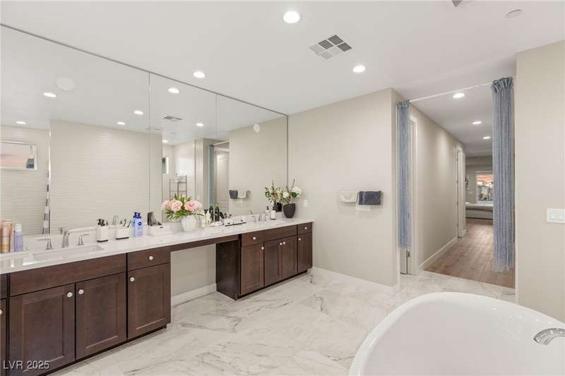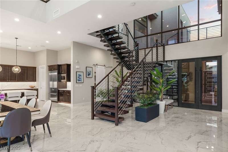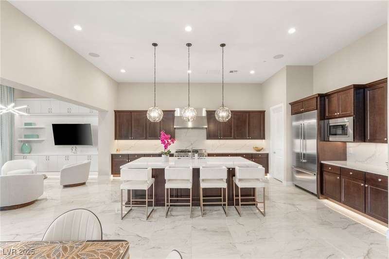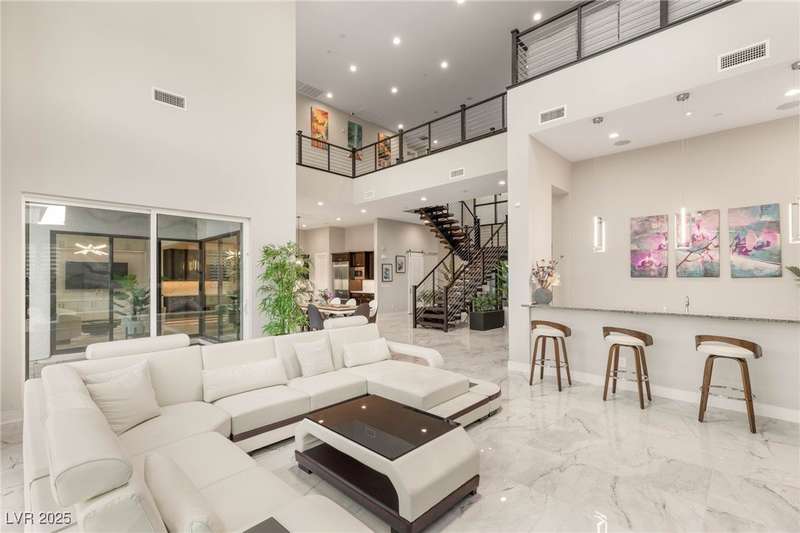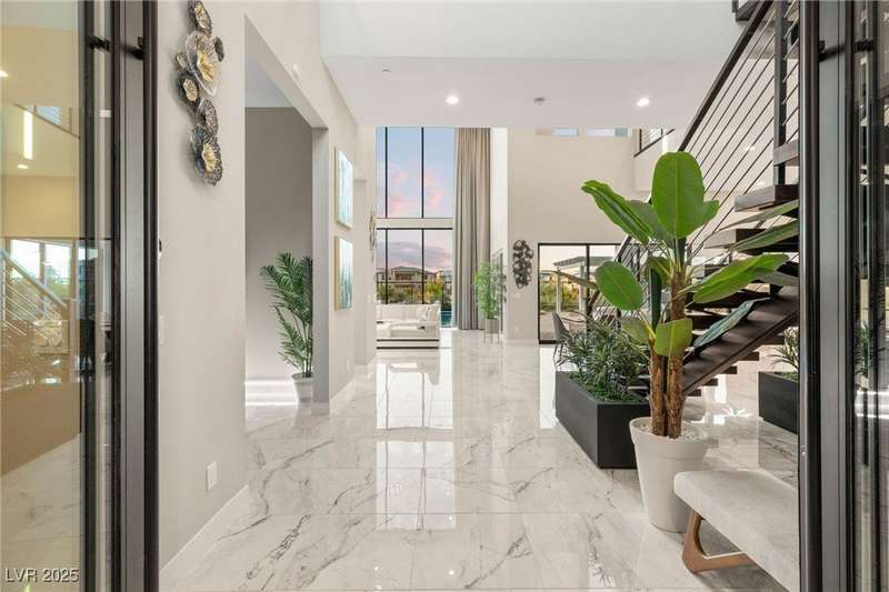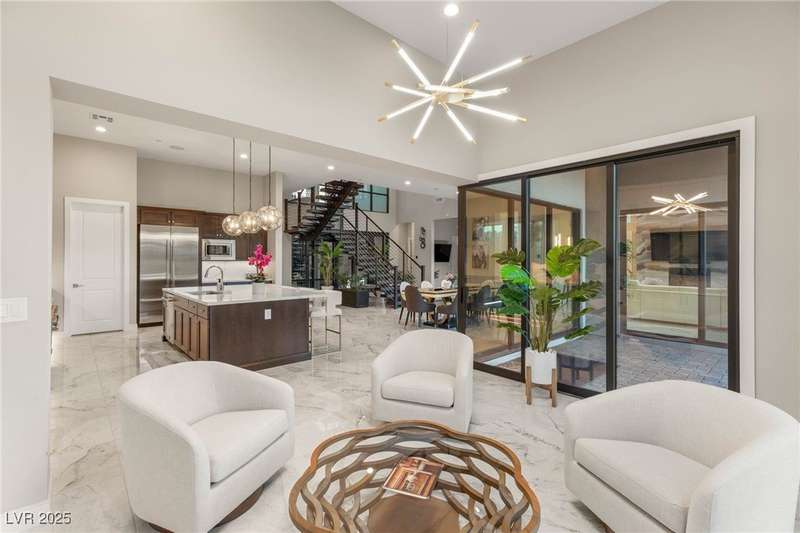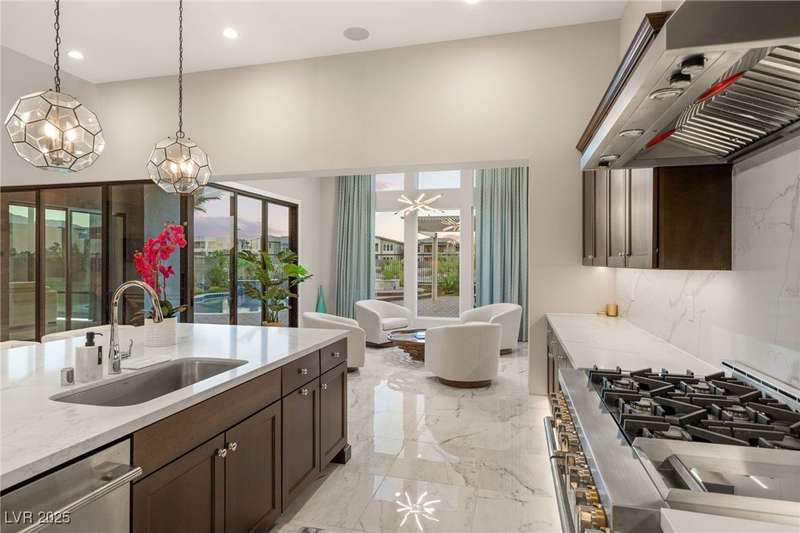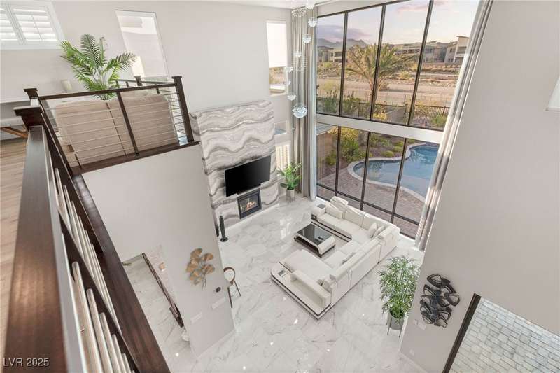 Welcome to the epitome of luxury living at 5201 Fading Sunset,located in guard-gated Mesa Ridge in Summerlin.This exquisite 4-bedroom, 4.5-bathroom + 3 car-garage residence,also features a multi-gen suite,ideally positioned on a premier lot, offering privacy and exclusivity. Designer finishes highlight every space, with vaulted ceilings & large windows that invite the home with natural light. Elegant marble and luxury vinyl plank flooring elevate the interior style. Enjoy unobstructed strip views & breathtaking mountain vistas as a stunning backdrop. Step outside to your own backyard oasis, featuring a tranquil pool that’s perfect for relaxation & entertaining.The gourmet kitchen boasts top-of-the-line appliances, including JennAir appliances & refrigerator, as well as a spacious island—ideal for culinary enthusiasts.Custom California closets throughout the home add refined organization & style. Thoughtfully curated, this residence delivers unparalleled quality, & Luxury that awaits!