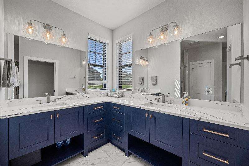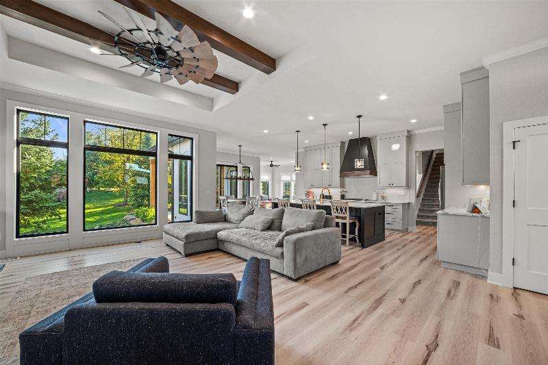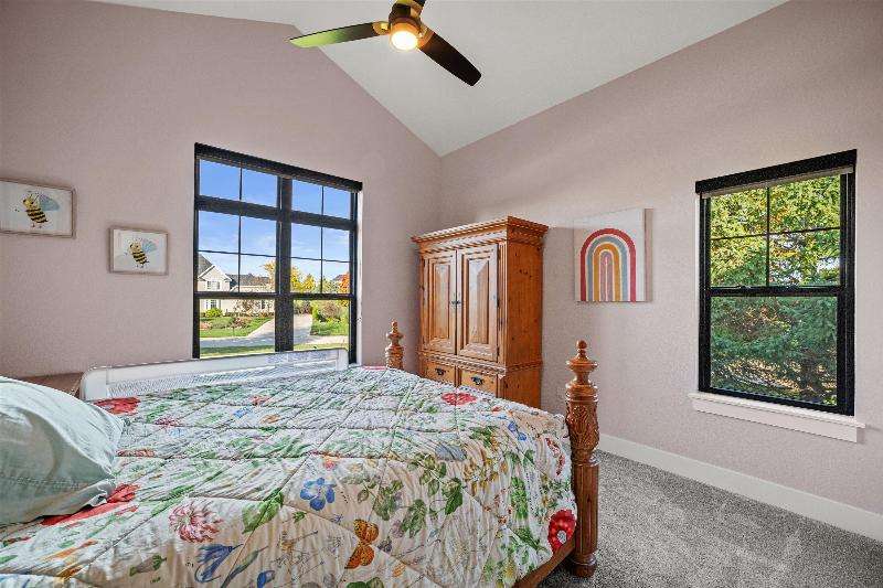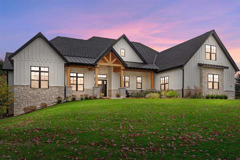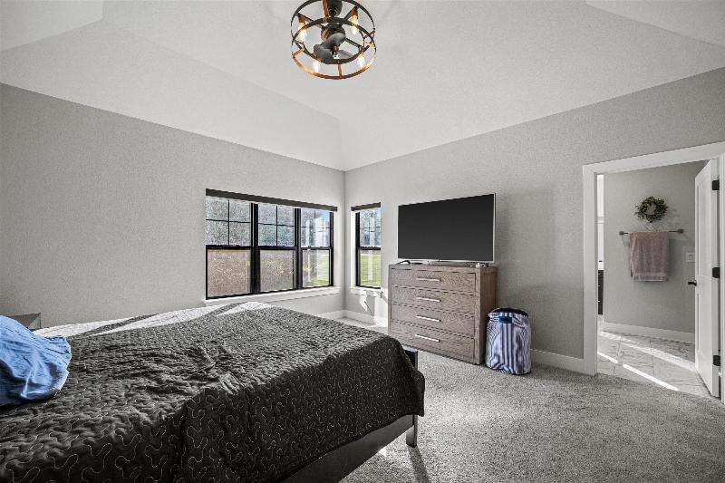 Experience the perfect blend of elegance, comfort and modern design in this stunning 5 bed, 4.5 bath custom built Synergy home offering over 5200 sq ft of impeccable finished living space. This 2023 build is an architectural masterpiece showcasing well-appointed finishes, thoughtful design and exceptional craftsmanship. Bright, open concept chefs kitchen features premium cabinetry, high end countertops, and an oversized island ideal for entertaining. Retreat to the luxurious master suite with a spa inspired bathroom, and a massive custom closet. The finished lower level provides incredible space with a family room, high end bar area, exercise room and putting green area. Outside is beautifully landscaped, a covered patio and private. Move into the prestigious Legend at Brandybrook today.
