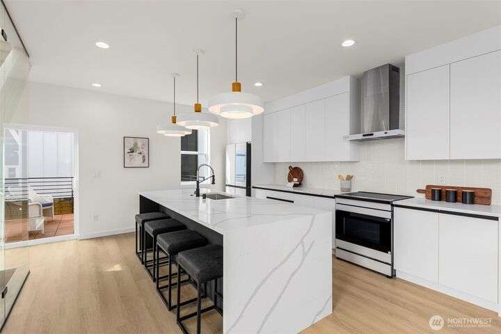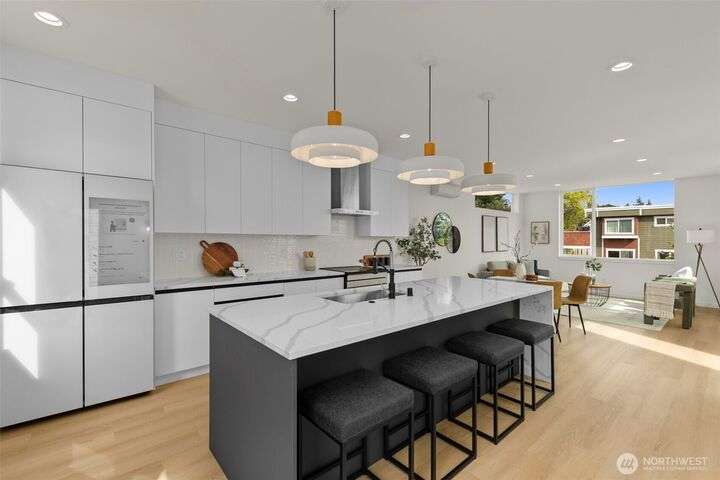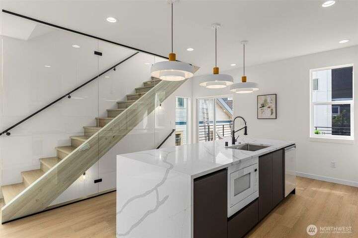 2 sold quickly, 2 to go! Greencity Homes is thrilled to offer another special one at Riven: a collection of 4 beautiful homes nestled in the perfect spot between Wallingford/Green Lake. This standalone 3-bed home boasts an attached GARAGE, an elevated primary suite with 4-piece bath and walk-in closet, and the sunlit living level is perfection with an entertainment-sized breakfast bar, glass wall & luxe Samsung Bespoke appliances. In an unbeatable location, you are steps away from Green Lake, Woodland Park & Zoo, & beloved eateries such as RockCreek, Paseo, Blue Star Cafe and Murphy's Pub! Enjoy effortless commuting with quick access to Hwy99 & I-5, + proximity to bustling neighborhoods including Ballard, UW, U Village, Green Lake & Fremont