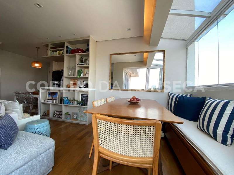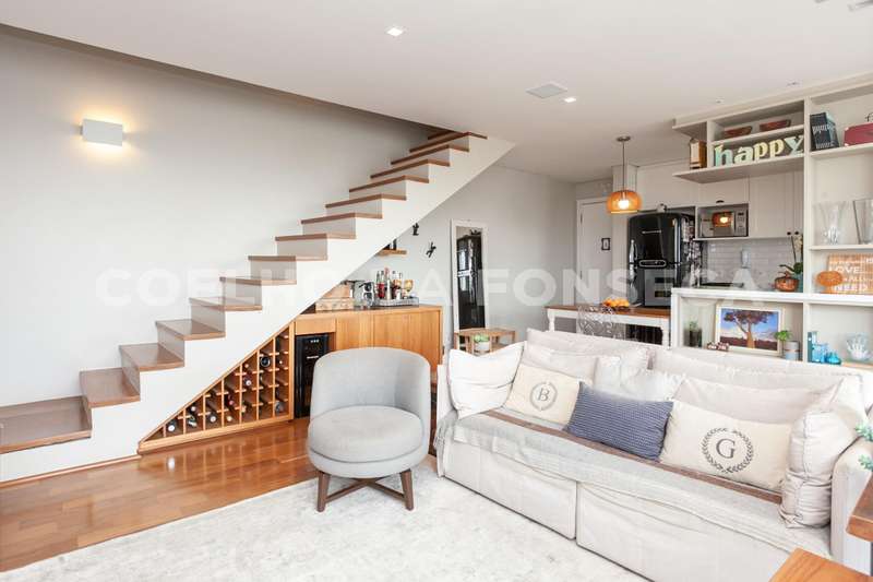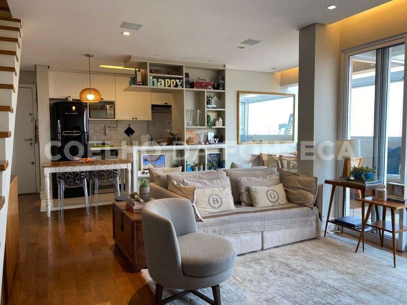 Cobertura no bairro Pinheiros com 108m² área privativa/útil, 2 dormitório(s), 2 suíte(s), 3 vaga(s), 2 banheiro(s), churrasqueira, terraço, depósito, duplex, ar condicionado, reformado (a), varanda gourmet.