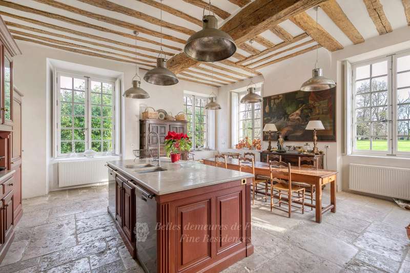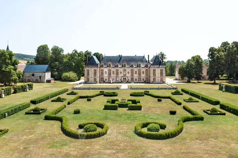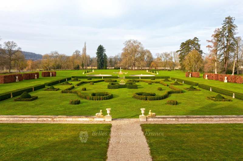 Sole Agent. 140-page file on request. Normandy Château - an architectural Jewel of the "Grand Siècle" One hour from Paris in Normandy’s Eure Valley. This truly remarkable ensemble features a magnificent chateau built between 1620 and 1627 on the site of a former Benedictine abbey. Its style bears witness to the architectural revolution initiated by Philibert de l’Orme, and is a contemporary of Louis XIII’s hunting lodge which was to be transformed to create Versailles Chateau. Boasting sumptuous reception rooms with remarkable decorative features, the chateau has undergone from 2004 to the present day meticulous “by the book” restoration work under the supervision of the “Architectes des Bâtiments de France” as well as the Ministry of Culture. Accessed by means of a magnificent drive lined with lime trees, the superb walled grounds feature sumptuous French formal gardens with water features, box hedges and antique statues, as well as Italian-style gardens also with water features and fountains. Boasting majestic centennial trees, the grounds are crossed by a branch of the River Eure and feature a “romantic” lake, an orchard and a greenhouse. Woodland is currently in the process of plantation. Unquestionably a rare and precious witness to 17th century French Art de Vivre.