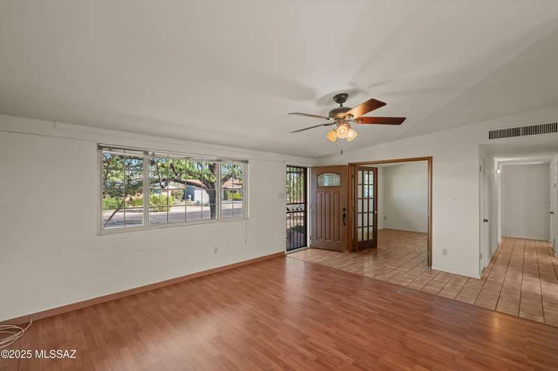 Loved by seller for 50 years. Estate sale in super neighborhood, close to everything. Burnt adobe construction with great floor plan. Living room flows to dining area and around to large kitchen with built-in desk area. Glass french doors off living room open to bedroom with a closet, great office/den if preferred. Large bonus room (not included in sq footage) adds great potential. Add a mini split and this is a total family room/game room, exercise room, whatever you need. Large backyard with huge potential. This home is completely comfortable and ready for it's next family and 50 more years. Seller is daughter of this long time owner, has limited knowledge for the SPDS and it will reflect that.