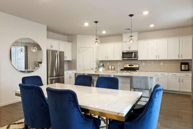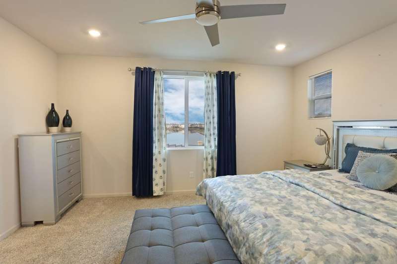 Built in 2023, this nearly new home in the desirable Spanos Park West community offers modern design, energy efficiency, and thoughtful upgrades throughout. Featuring 5 bedrooms, 3 bathrooms, and 2,833 square feet of living space, this home provides plenty of room for both relaxation and entertaining. The open-concept floor plan includes an oversized kitchen with upgrades galore, a spacious dining area, and bright living spaces filled with natural light. A downstairs bedroom and full bathroom make this home perfect for guests or multigenerational living, while the large upstairs loft adds even more versatility. Enjoy paid solar with 11 panels, helping keep energy costs low. Outside, the large yard features stamped concrete, turf, and low-maintenance landscaping, along with beautiful lake views. The 3-car garage includes one bay converted into a convenient kitchen area, offering extra flexibility. Modern, efficient, and move-in ready 6907 Foraker Drive combines comfort, style, and location in one exceptional home.
