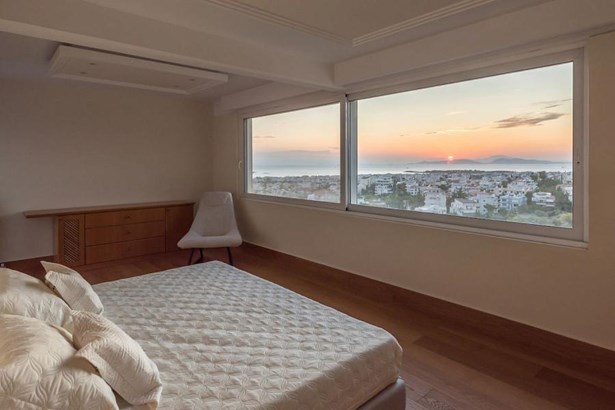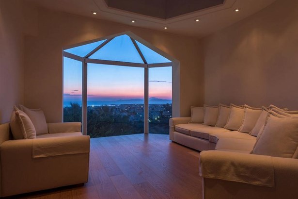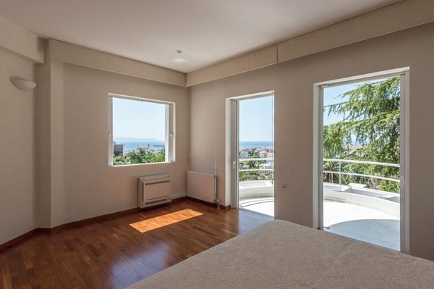 Outside, a sprawling garden and terrace offer picturesque settings for relaxation and entertainment. Unwind by the pristine swimming pool, basking in the sun while savoring panoramic views of the serene sea.