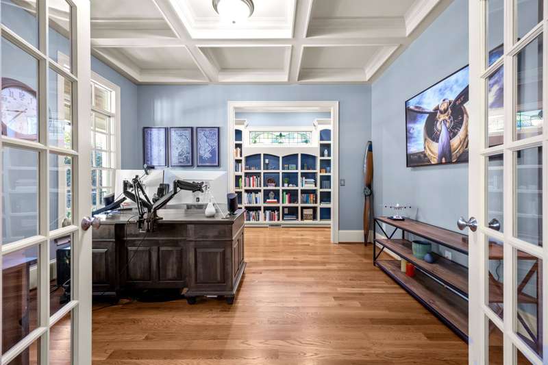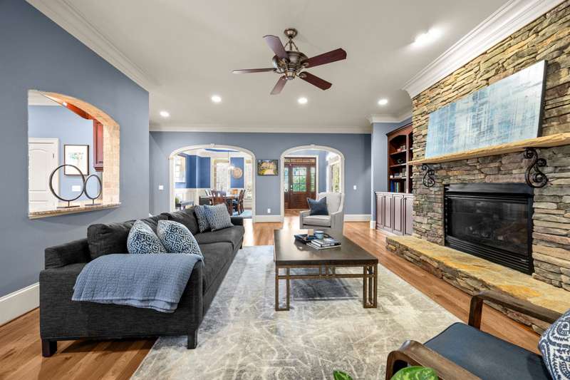 Stunning Custom Executive Home on Private Cul-de-Sac.Welcome to this beautifully crafted executive residence, tucked away on a quiet cul-de-sac offering both privacy and elegance. Step into a dramatic two-story foyer that opens to a spacious great room with a cozy fireplace ? perfect for relaxing or entertaining.The main level boasts a true gourmet kitchen with top-tier finishes, a formal dining room with coffered ceiling, a private study with French doors, and a guest suite complete with ensuite bath. Rich hardwood floors and stately moulding details throughout elevate the home's timeless sophistication.Upstairs, the expansive primary suite is a true retreat featuring a separate sitting area, a spa-like bathroom, and an absolutely massive walk-in closet/dressing room. Two additional bedrooms and a large bonus room provide plenty of space for family or guests.Step outside and enjoy the exceptional outdoor living space, complete with a spacious rear porch, covered and uncovered patio areas, and a built-in fire pit ? ideal for year-round entertaining.Additional highlights include a 3-car garage and countless custom upgrades throughout. This home offers the perfect blend of luxury, comfort, and thoughtful design.