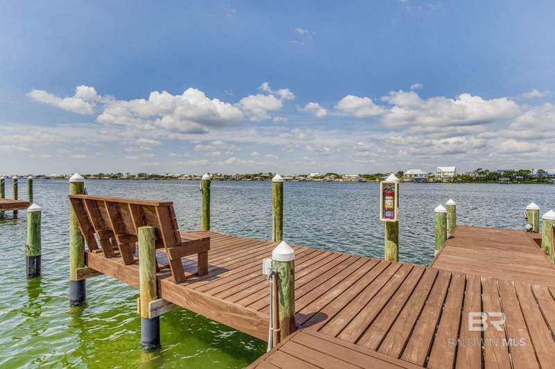 WELCOME TO THIS BOATER'S PARADISE AT DOCKS ON OLD RIVER #7B, OFFERING YOUR VERY OWN DESIGNATED, PREMIUM BOAT SLIP CONVENIENT TO YOUR CONDO! This delightful 2-bedroom, 2-bathroom residence serves as an ideal island getaway for you and your family or a wonderful rental property. Take advantage of amenities such as the outdoor pool, fish cleaning station, grill and picnic area, fire pit, additional parking for vehicles and trailers, and ample covered parking (first-come, first-served). The residence features an open-plan kitchen with a lovely view of the Gulf of Mexico as well as living area that opens to a spacious balcony with storage, providing breathtaking views of Ole River where boats pass by and dolphins play. The Primary Bedroom includes an ensuite bathroom and direct balcony access. Offered fully furnished, you can easily move right in and embrace the Perdido Life! With its prime location and boating facilities, you have convenient access to explore nearby islands, cruise through the Pass, or visit the renowned Flora Bama. Don't let this unique opportunity to own a piece of paradise slip away. Arrange your private tour today and start living your dream! Buyer to verify all information during due diligence.