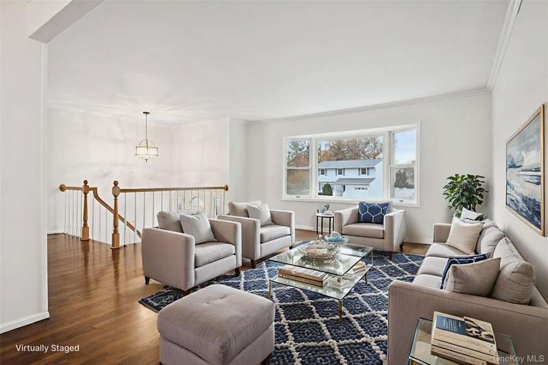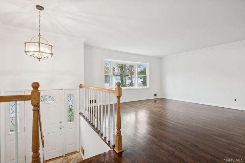 Welcome to this stunning 4-bedroom, 2-bath renovated home located in the sought-after Sherbrooke section of Smithtown within the Smithtown School District. This move-in-ready home has been tastefully updated throughout, blending modern finishes with classic charm. Some of the many features, include hardwood floors, architectural roof, Andersen thermopile windows, gas hot water and heat, 2 car garage, skylights, pull downstairs to attic, blacktop driveway with Belgian block lining. The main level features newly finished dark oak hardwood floors, elegant crown molding, and bay windows in the living, dining, and kitchen areas that fill the space with natural light. The updated kitchen boasts granite countertops, stainless steel appliances, and a newly installed wood floor. The primary bedroom includes a sliding door leading to a private deck-perfect for morning coffee or evening relaxation. The lower level offers versatile living space, complete with a summer kitchen, and a fourth bedroom. New laminate wood flooring and stone tile accents in the hallway, foyer, and bedroom add to the home's appeal. Possible Mother-Daughter with proper permits.Additional features include newly renovated bathrooms, new ceiling fans and lighting, gas heat, and in-ground sprinklers.Conveniently located near parks, shopping, and transportation, this home offers the perfect blend of comfort, style, and location.Don't miss the opportunity to make this beautiful home yours!