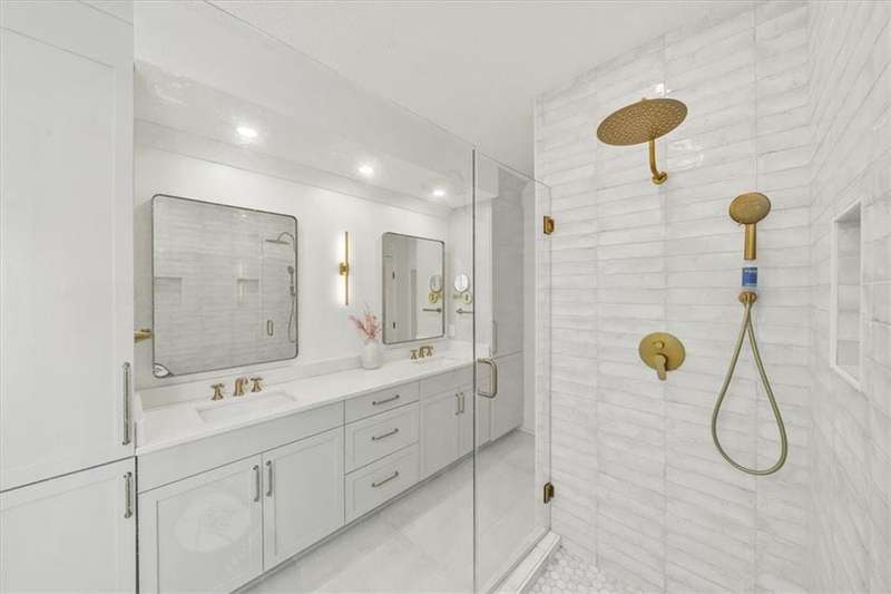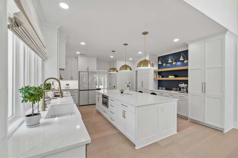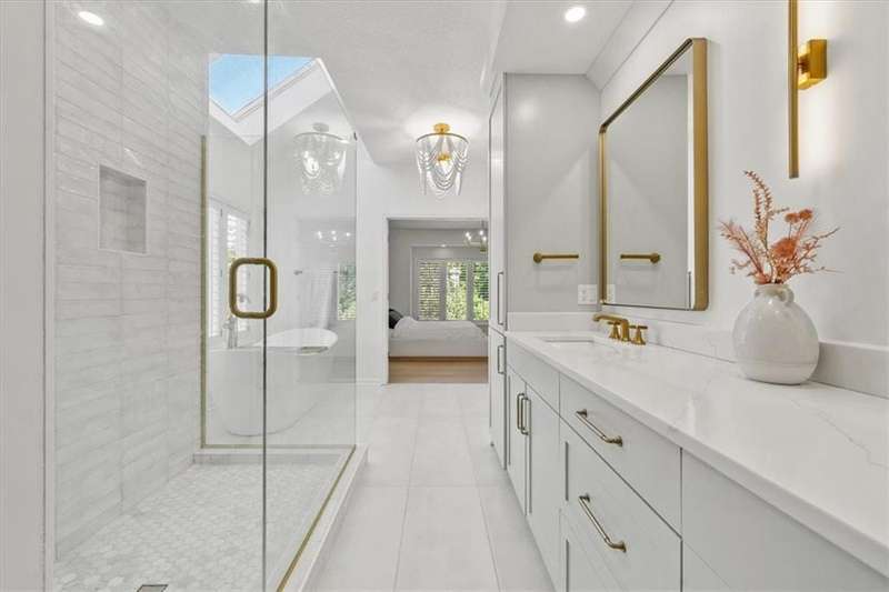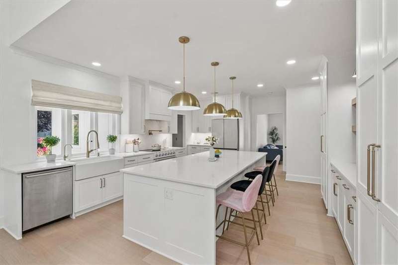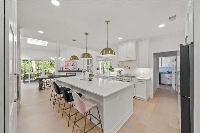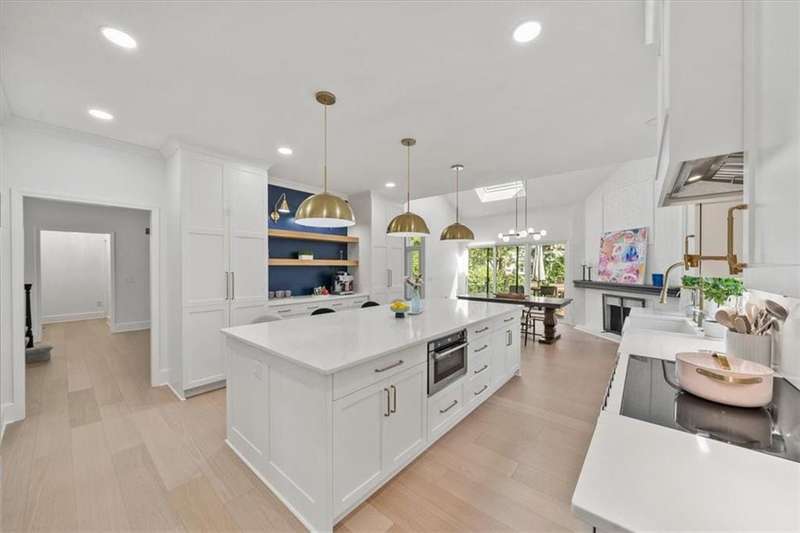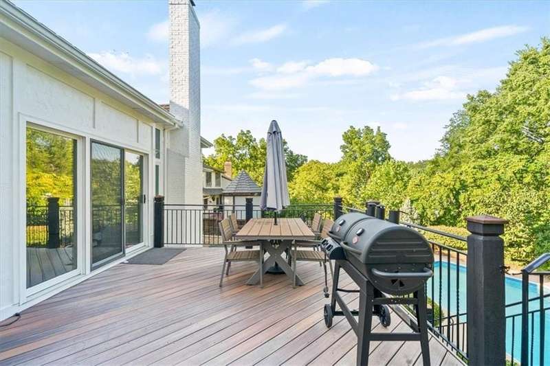 Welcome to your private oasis! The spectacular backyard is designed for year-round enjoyment, featuring a sparkling pool, rock garden, gazebo, expansive deck, flower gardens, and open green space. Inside, every detail has been beautifully renovated with todays sleek colors and finishes. The brand-new kitchen boasts custom white cabinetry, a hearth area, high-end stainless appliances, white quartz counters and soaring vaulted ceilings, while the expansive great room impresses with new light hardwood floors, mile high ceilings and beautiful floor to ceiling tiled fireplace. The primary suite offers a luxurious retreat with a huge walk-in closet and a spa-inspired bath. Upstairs, three spacious bedrooms provide comfort and style, while the walk-out daylight lower level features a full bath and exercise area. Thoughtfully redesigned throughout, this home blends modern sophistication with comfortperfect for todays most discerning.