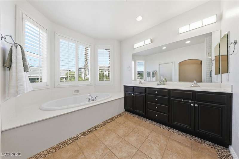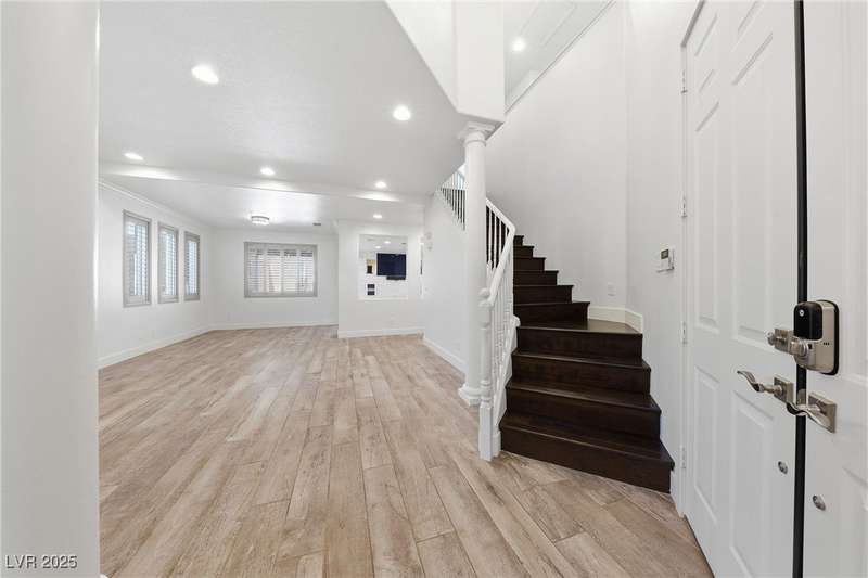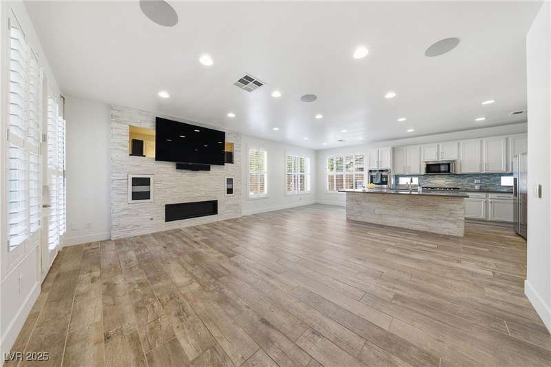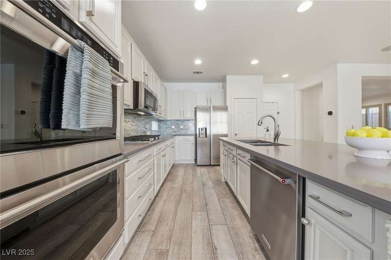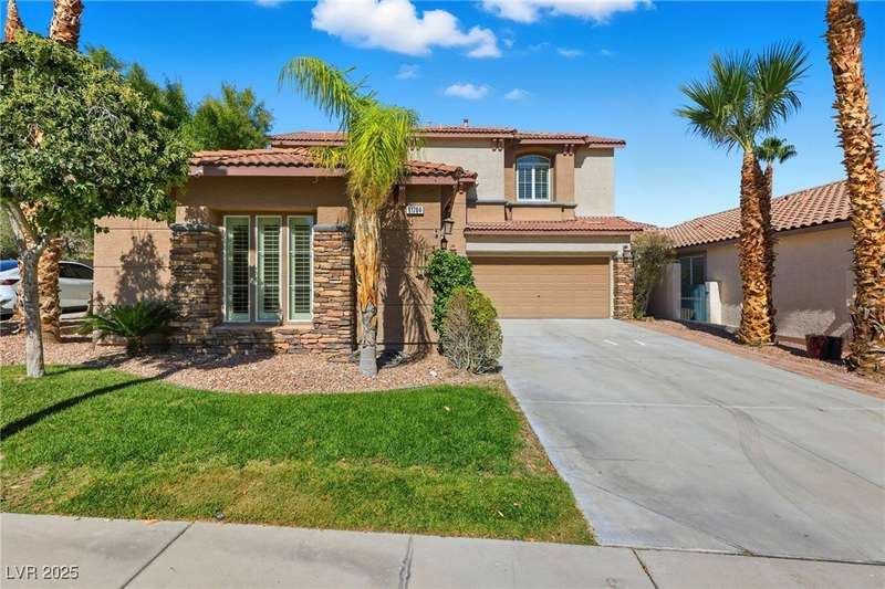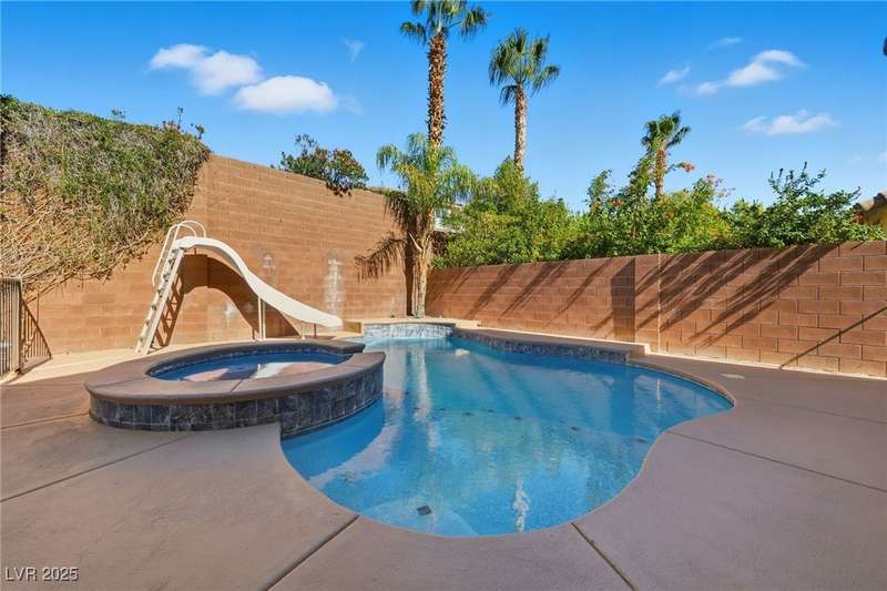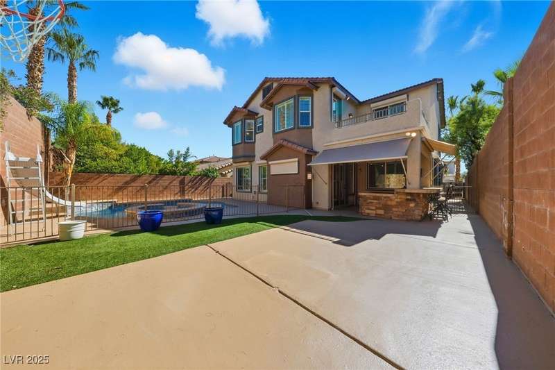 Nestled in The Vistas of Summerlin West, this stunning two-story corner lot home offers 5 bedrooms and 3 baths with freshly painted interior throughout the whole home. The updated modern kitchen seamlessly flows into the open-concept living area, creating the perfect space for both everyday living and entertaining. A separate formal room provides flexibility for a dining area, office, or additional lounge space. Step outside to a private yard with a beautiful pool & spa surrounded by a freshly painted pool deck and patio. Enjoy entertaining with your covered built-in BBQ area with retractable shades for additional shade if needed. The large primary suite offers separate closet spaces, along with breathtaking mountain views from the private balcony. This property is conveniently located just minutes from Downtown Summerlin, Red Rock Canyon, Vistas Park, hiking and walking trails, and top-rated schools. Come see for yourself!