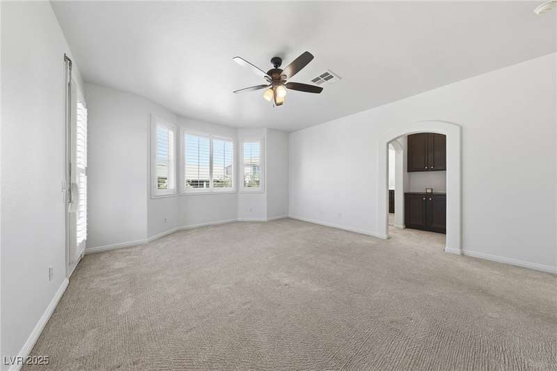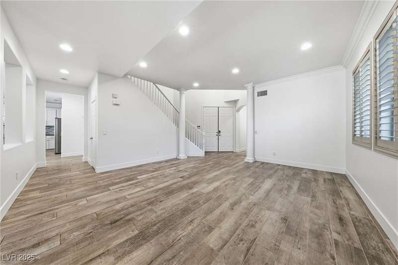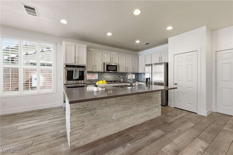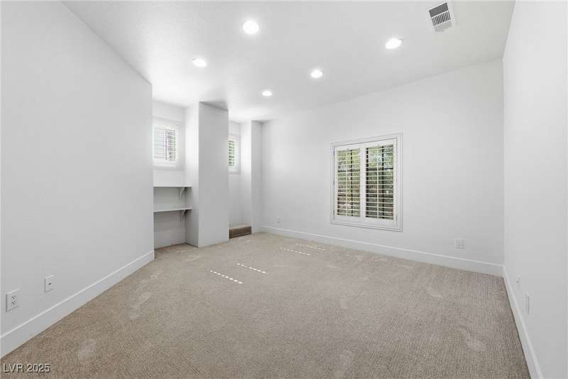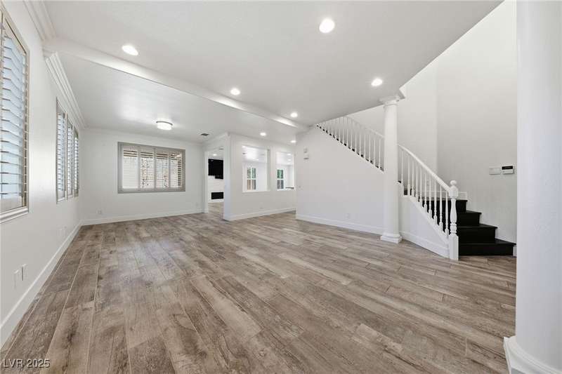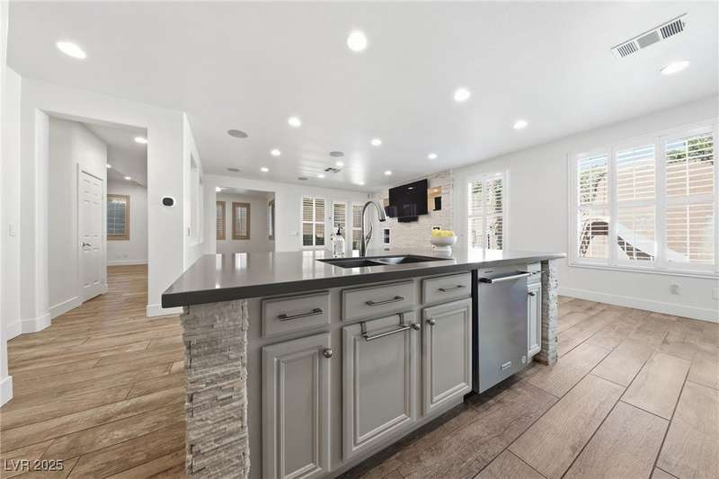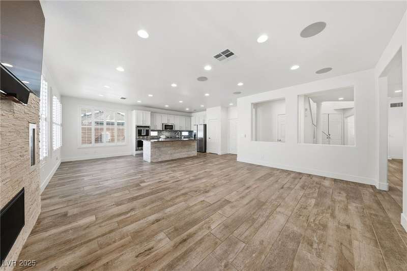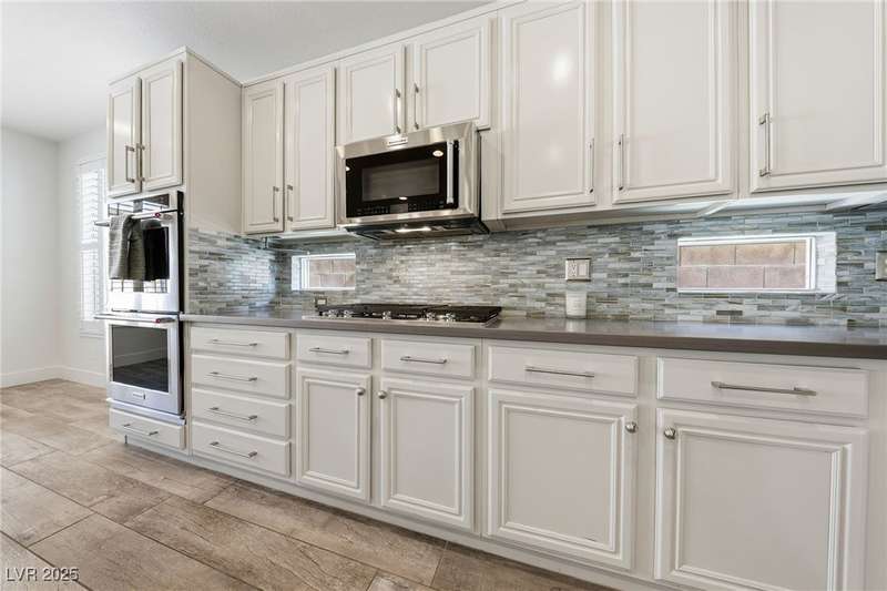 Nestled in The Vistas of Summerlin West, this stunning two-story corner lot home offers 5 bedrooms and 3 baths with freshly painted interior throughout the whole home. The updated modern kitchen seamlessly flows into the open-concept living area, creating the perfect space for both everyday living and entertaining. A separate formal room provides flexibility for a dining area, office, or additional lounge space. Step outside to a private yard with a beautiful pool & spa surrounded by a freshly painted pool deck and patio. Enjoy entertaining with your covered built-in BBQ area with retractable shades for additional shade if needed. The large primary suite offers separate closet spaces, along with breathtaking mountain views from the private balcony. This property is conveniently located just minutes from Downtown Summerlin, Red Rock Canyon, Vistas Park, hiking and walking trails, and top-rated schools. Come see for yourself!