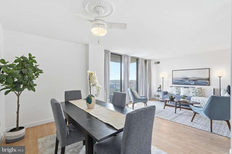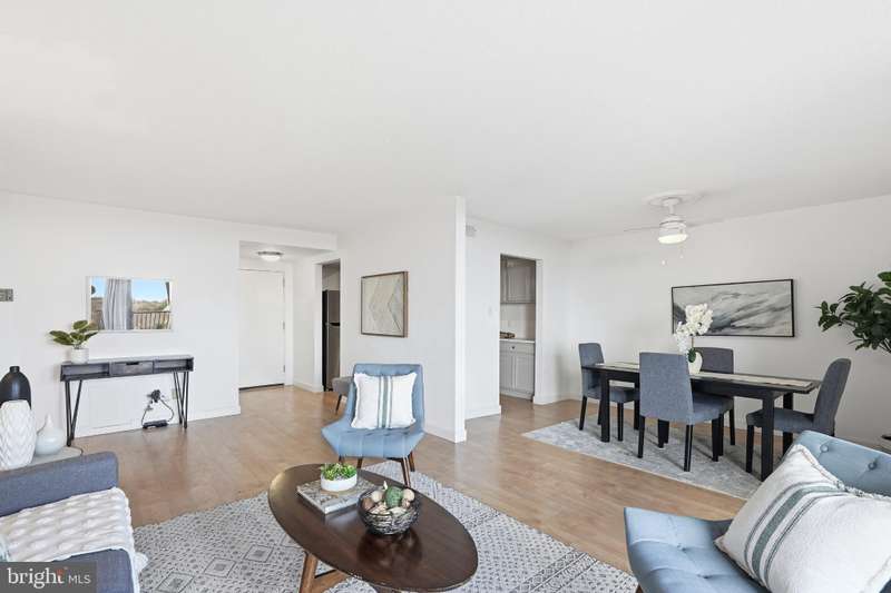 **OPEN HOUSE: SAT (11/15) 1-3PM** Welcome to American Centre, where urban convenience meets stylish comfort in this beautifully refreshed one-bedroom, one-bathroom condo. The home features wide-plank luxury vinyl flooring and a spacious, light-filled living room that opens to a private balcony with expansive city views-perfect for enjoying morning coffee or evening sunsets. Enjoy the separate dining area with easy access to the updated kitchen with stainless appliances and ample cabinet and counter space. The generously sized bedroom offers a walk-in closet, providing plenty of storage space, while the bathroom is easily accessible from both the bedroom and main living area. Residents enjoy the added perk of free washer and dryer access on every floor, along with ALL UTILITIES INCLUDED IN THE MONTHLY FEE-truly hassle-free living. Plus, ONE GARAGE PARKING SPACE IS INCLUDED to make parking a breeze. This well-maintained building offers an array of desirable amenities, including an outdoor pool, a 24/7 concierge, a fully equipped fitness center, a stylish lobby, a community room, and secure package storage. Situated in the heart of Rockville, this location places you near the Metro, Trader Joe's, a seasonal outdoor skating rink, and a vibrant mix of restaurants, cafes, and shops. It's the perfect place to enjoy a connected, convenient lifestyle in one of Montgomery County's most accessible communities.