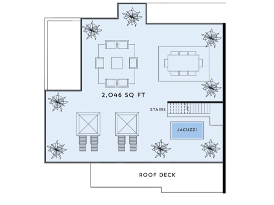 This Penthouse unit boasts 1,766 sq. ft. of interior space with a 2,366 sq. ft. balcony and roof deck with Jacuzzi. Contact us today to learn more about One Marina and make this your home at Palm Cay.