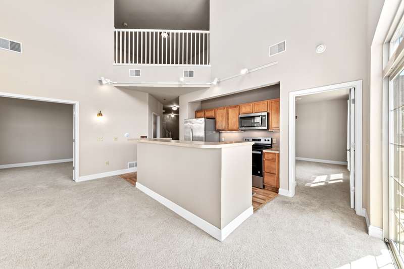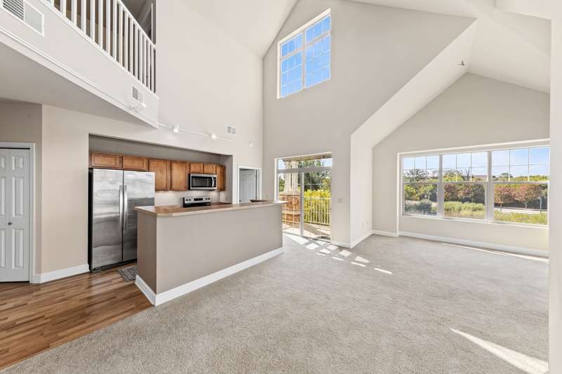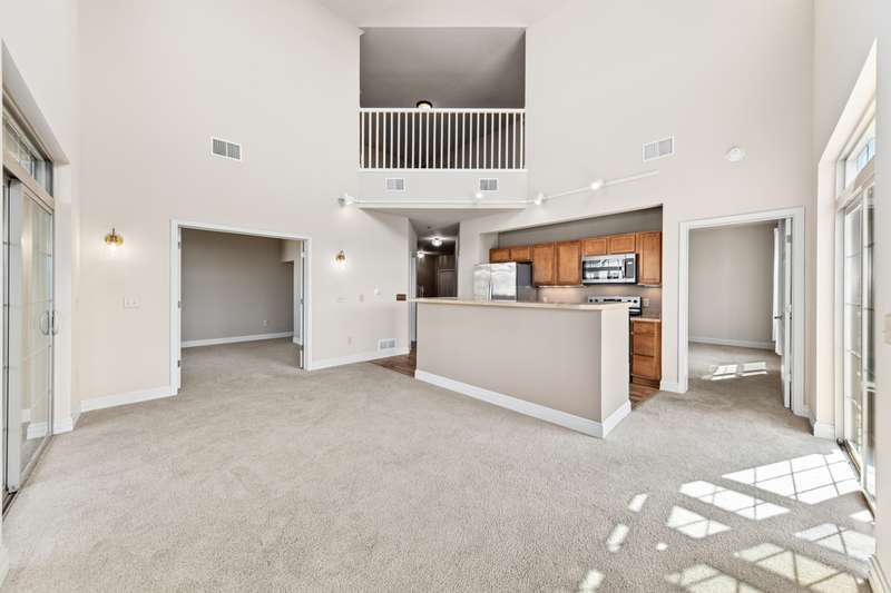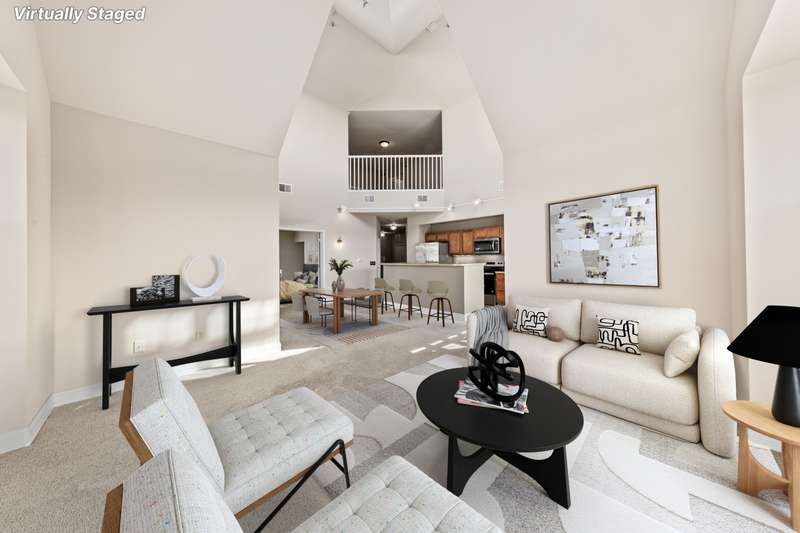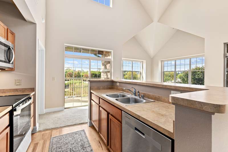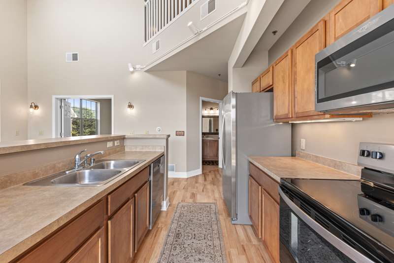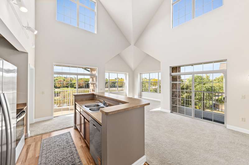 Vibrant, vivacious, and spacious! Welcome to this dream second floor lofted condominium at City Center at Deer Creek! Step inside to find an inviting floor plan with gracious open staircase, cascading from the upper-level loft into a spacious entry foyer. The entire unit is agreeably decorated with great neutral paint selections, white painted millwork throughout and boat loads of natural light across the inviting living space. Dramatic and soaring vaulted ceilings of nearly twenty-three feet adds extreme drama and interest to the sunbathed main living area, complete with neutral carpeting two sets of patio doors accessing the private deck and open concept kitchen and adjacent snack zone! The kitchen is complimented by a new stainless range, dishwasher, and microwave along with a newer stainless steel, refrigerator and plentiful, birch toned cabinetry. There is loads of practicality throughout this spacious unit with main floor laundry, with full-size washer and dryer included. The main floor primary suite is highlighted by a walk-in closet, a shower over tub style ensuite bath with ceramic tile floor. The main floor den provides wonderful flex space and even the potential for a future third bedroom or guest area! Upstairs, you'll find the second bedroom area/loft perched high above the main living space and complete with not one, not two, but three walk-in closets. Brand new furnace and air conditioning were just installed in August, 2025 along with the 50 gallon water heater in April, 2024 for peace of your mechanical peace of mind. You will have the utmost in vehicular convenience as well, with two underground parking spaces! Enjoy condo living with a stress-free attitude and a smile on your face, just minutes to retail at Moorland Road and National Avenue, quick access to both I-43 and 894 all while being perfectly positioned near Deer Creek Golf Course and the adjacent natural area, mature landscaping and excellent walkability!