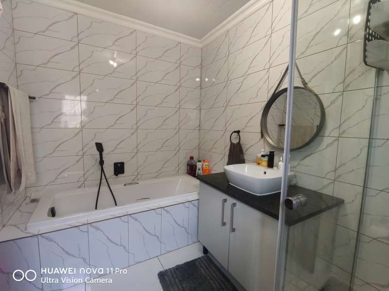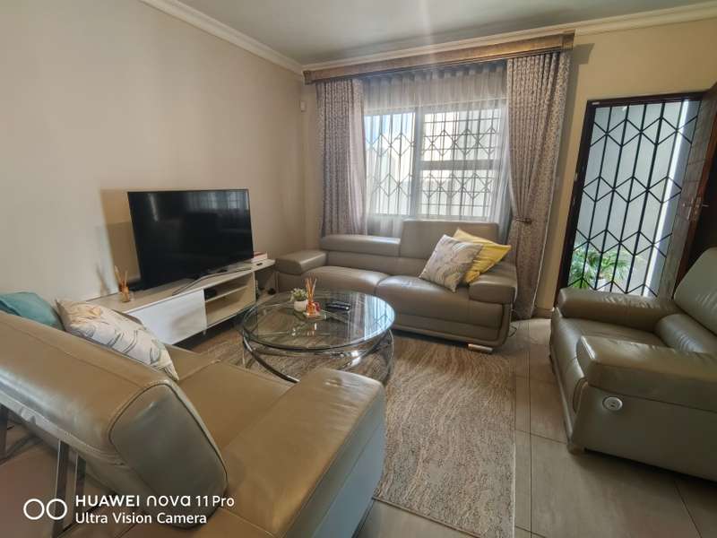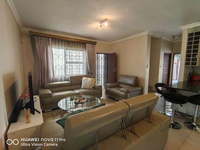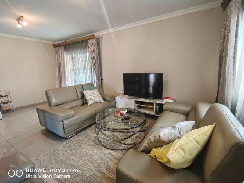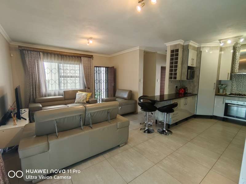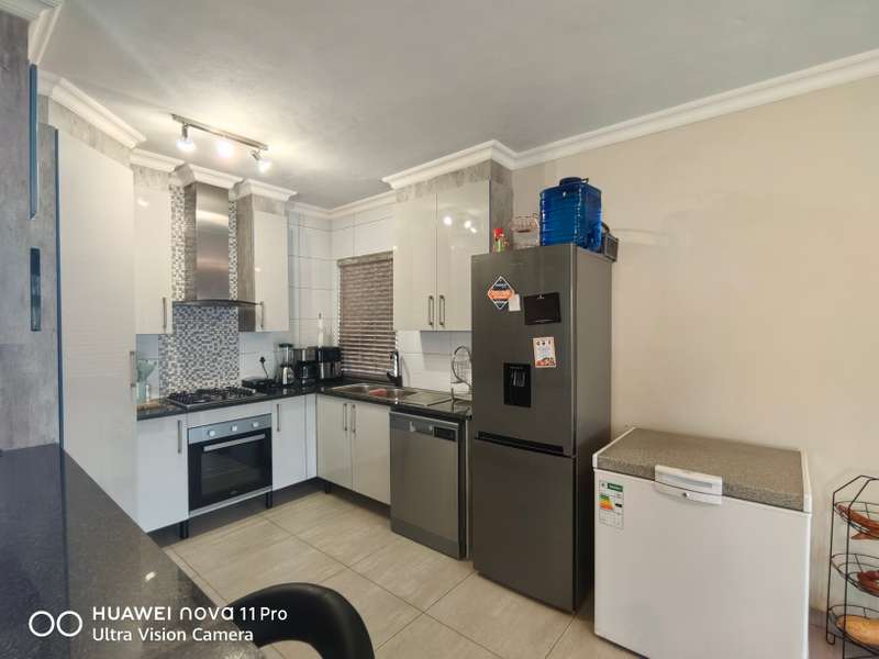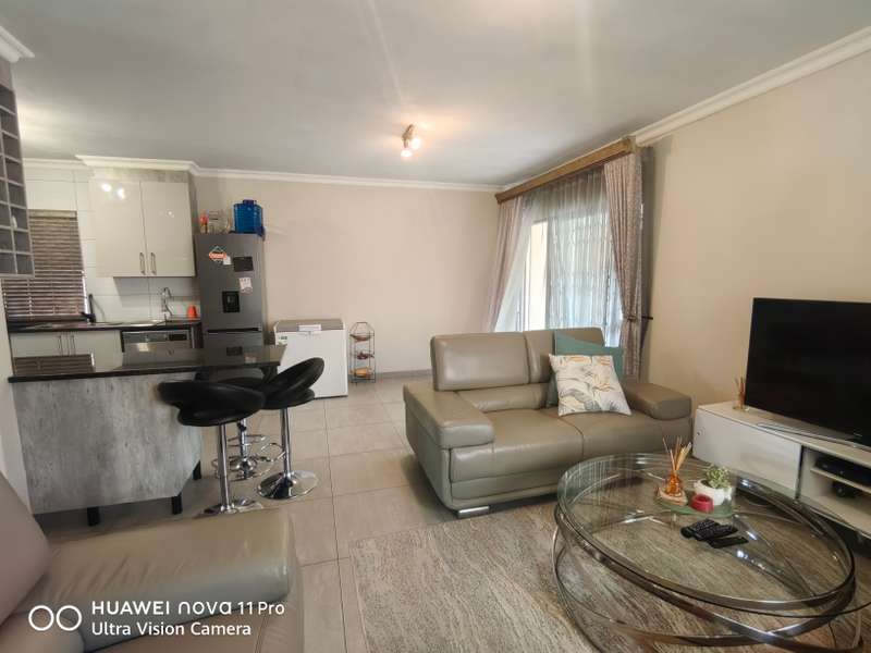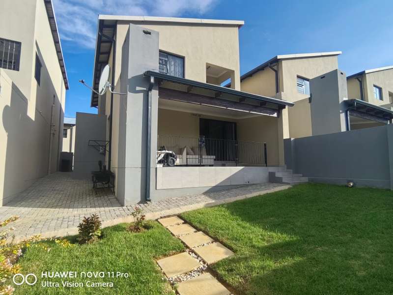 This beautifully designed 3-bedroom, 2-bathroom duplex townhouse offers modern living with exceptional style and comfort. The open-plan layout seamlessly combines the kitchen, dining, and lounge areas, creating a spacious and inviting atmosphere perfect for both relaxing and entertaining. Large sliding doors open from the lounge to the private backyard, where you’ll find a lovely patio complete with a built-in braai, perfect for outdoor gatherings and enjoying the fresh air. The main bedroom is a true sanctuary, featuring a private ensuite bathroom, a walk-in closet, and a balcony that provides breathtaking views of the city skyline. This serene retreat offers both privacy and luxury. The townhouse also includes two additional well-sized bedrooms that share a stylish and functional bathroom, ideal for family living. The double garage provides secure parking and additional storage space, adding to the home’s practicality. With its modern finishes, thoughtful design, and prime location, this duplex townhouse offers the perfect blend of convenience, comfort, and luxury living.