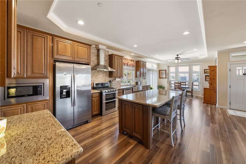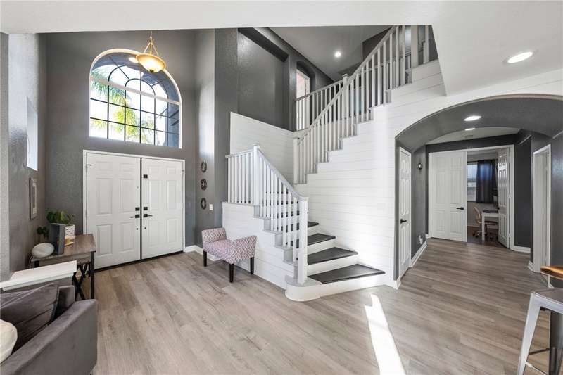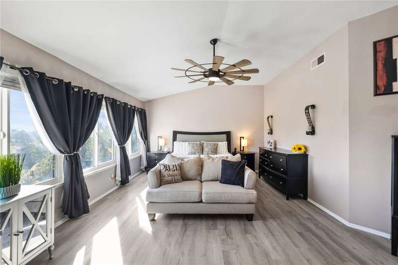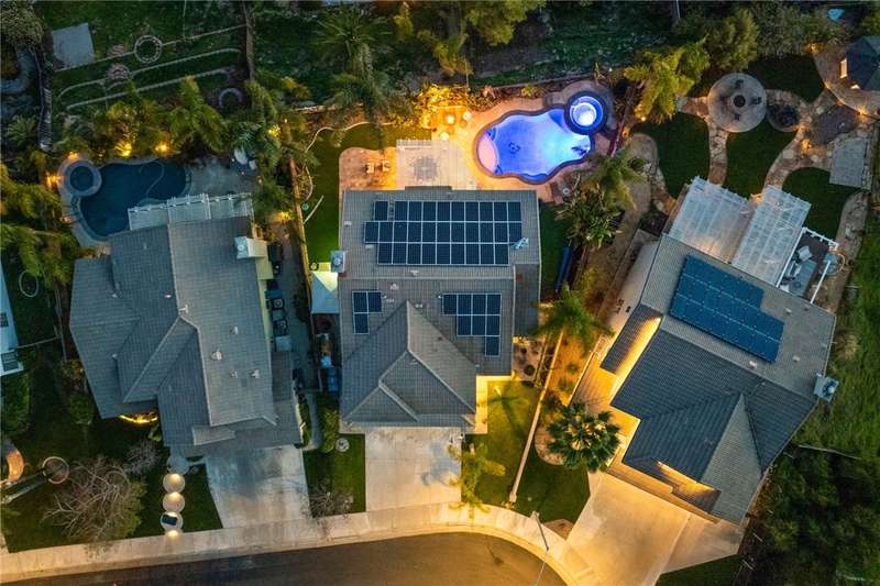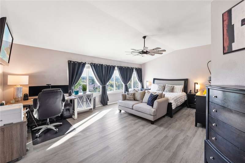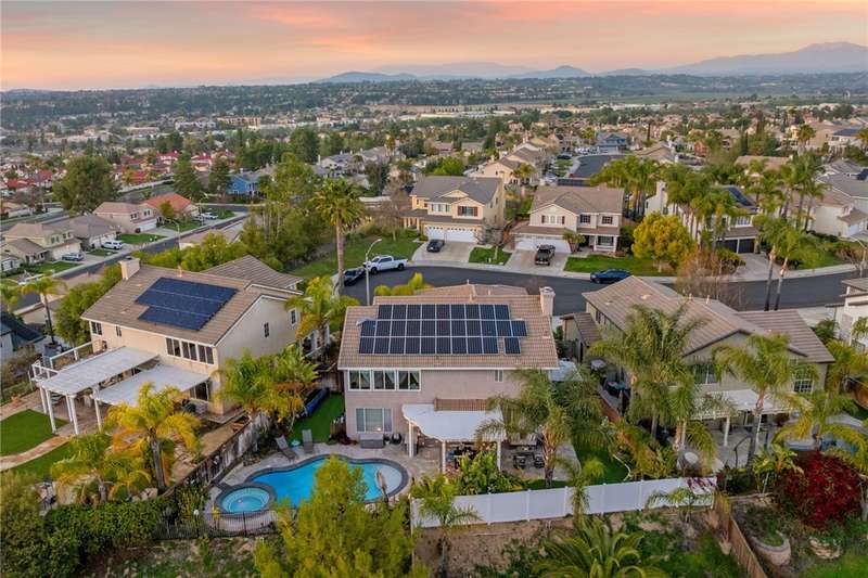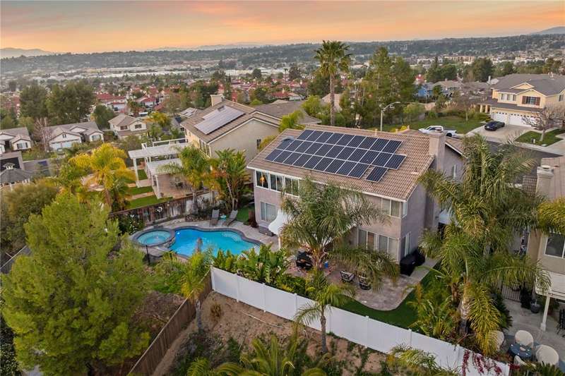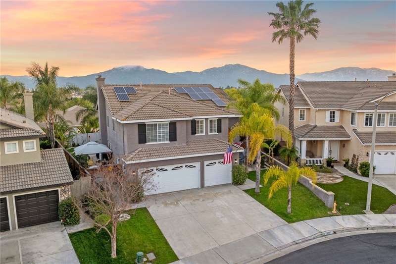 THIS ONE HAS IT ALL!!! VIEWS ~ POOL ~ CUL-DE-SAC ~ SOLAR ~ LOFT ~ LOCATION!!! This stunning 5-bedroom home in South Temecula is a true showstopper, offering breathtaking views, and a prime cul-de-sac location in Vail Ranch. Nestled in a quiet neighborhood overlooking the picturesque Temecula Valley, this home boasts sensational mountain views and mesmerizing sunsets. The inviting curb appeal features lush landscaping and a charming courtyard, setting the stage for what awaits inside. Step through the double-door entry and experience modern elegance with luxury vinyl flooring and custom paint throughout. The soaring two-story ceiling enhances the desirable floorplan, creating an open and airy ambiance. Downstairs, enjoy a formal living room, dining room, and the convenience of a bedroom and full bathroom. The dream kitchen is designed for both style and functionality, featuring white cabinetry with nickel hardware, stainless steel appliances, a 5-burner cooktop, granite countertops, an island, and a cozy breakfast nook. Upstairs, a step-down loft with a media niche and recessed lighting provides additional living space. The spacious primary suite, situated at the back of the home, offers breathtaking mountain and pool views, two closets (including a walk-in), dual vanities with bowl sinks and glass spout deck-mounted faucets, a luxurious soaker tub, and a remodeled shower with a jetted shower tower. Three additional bedrooms complete the upper level, two of which share convenient Jack & Jill bathroom access. One of the secondary bedrooms is exceptionally spacious, featuring a double-door entry.