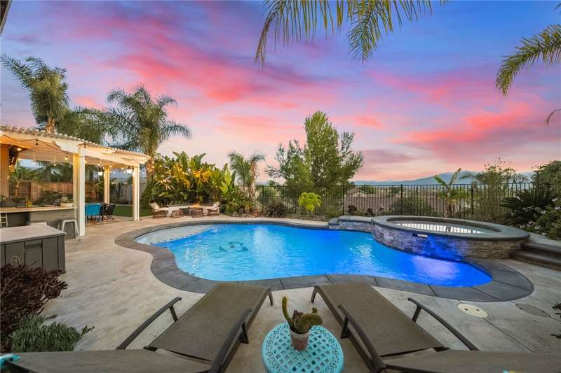 The backyard is a true paradise, perfect for entertaining or unwinding. A sparkling pool, bubbling jacuzzi, fire pit, and tropical landscaping create a resort-like atmosphere, while artificial grass ensures easy maintenance. Located within the boundaries of top-rated schools such as Great Oak High School, and also conveniently close to shopping, dining, and entertainment, plus within an easy drive to Temecula Wine Country, Old Town Temecula, and Pechanga Casino. Don't miss this exceptional opportunity--schedule your private tour today!