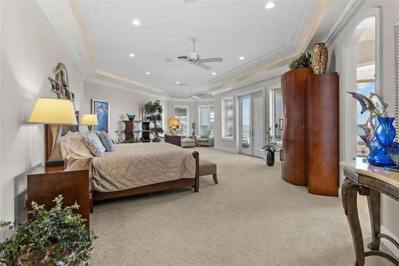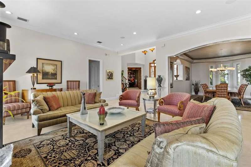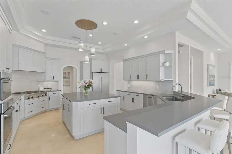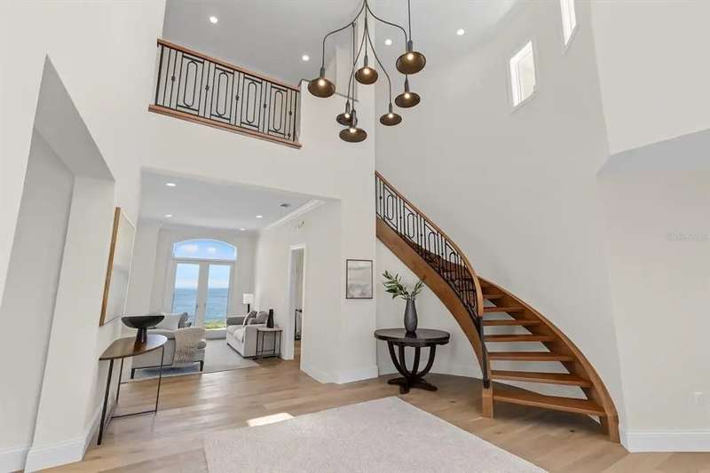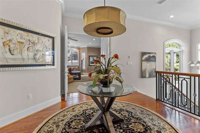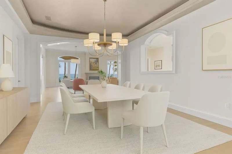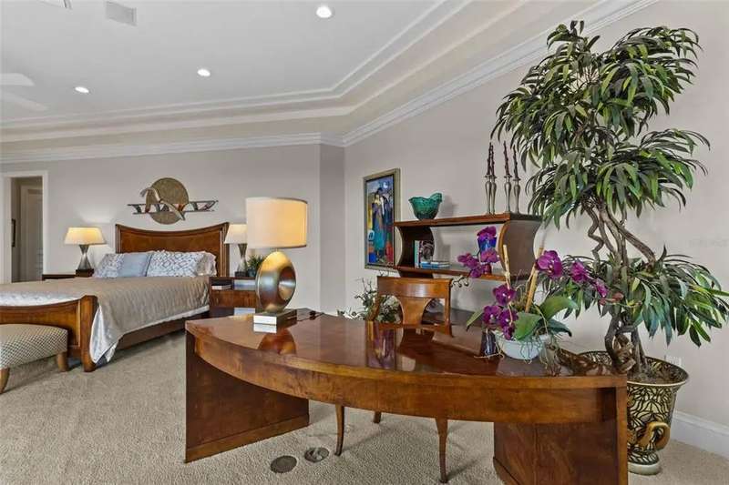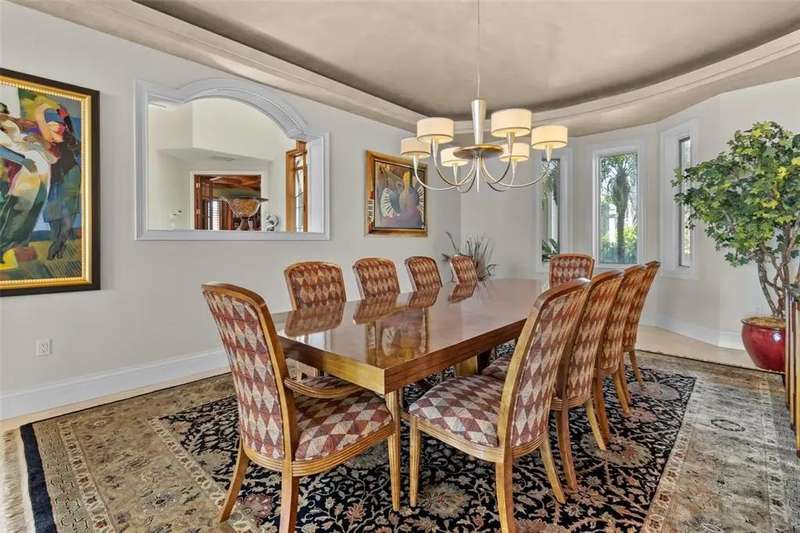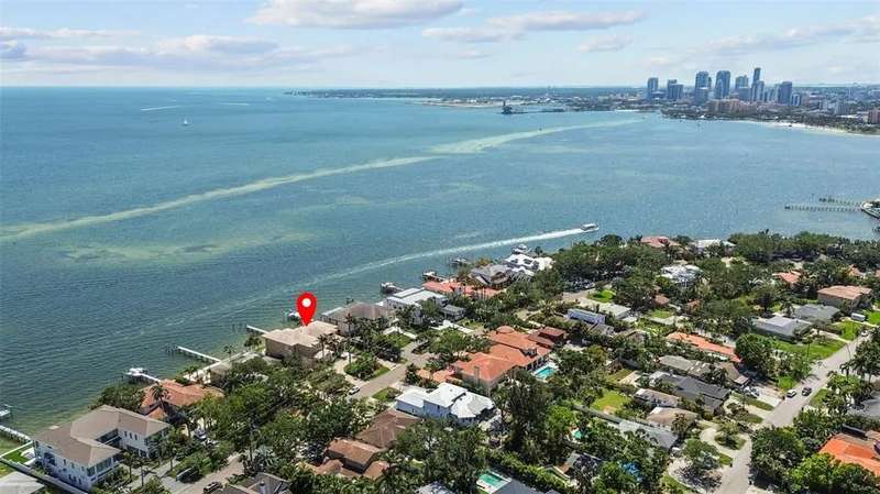 One or more photo(s) has been virtually staged. Set along the coveted Brightwaters Boulevard on Snell Isle, this exceptional waterfront estate offers nearly half an acre of prime property with 104 feet of direct water frontage and sweeping views of Tampa Bay and the iconic downtown St. Petersburg skyline. Encompassing 7,710 square feet of thoughtfully designed living space, this elegant custom-built residence masterfully blends luxury, functionality, and effortless entertaining. The home features four spacious bedrooms—all with en-suite baths—plus three additional half baths, a stately executive office, a private home theater, a large game room, and an oversized three-car garage. Constructed with superior block-to-top construction and a durable concrete tile roof, every inch of this home reflects quality and craftsmanship. Through majestic artisan glass double doors, a grand two-story foyer welcomes you with a dazzling custom hand-blown glass chandelier and sconces that accentuate the sweeping staircase. The formal living and dining rooms offer a dramatic introduction, showcasing floor-to-ceiling French doors that frame breathtaking vistas of the Bay. Step outside to your private waterfront oasis—complete with a sparkling resort-style pool, expansive travertine sundeck, covered lanai, outdoor kitchen and bar, and a private dock—all set against a backdrop of glistening water and skyline views. Inside, the expansive family room is perfect for gathering, featuring a full Sub-Zero wine refrigerator, dry bar, and massive picture windows that invite the outdoors in. The chef’s kitchen is a culinary masterpiece, equipped with a Sub-Zero refrigerator and freezer, Thermador six-burner gas range and hood, Dacor double ovens with warming drawer, Miele dishwasher, dual Sub-Zero drawer fridges, custom hardwood cabinetry, granite countertops, a large center island, and a walk-in butler’s pantry with built-in desk, ice maker, and additional storage. A charming breakfast nook offers more mesmerizing Bay views. The first-floor guest suite provides a private retreat, opening directly to the lanai and pool—ideal as a main-level primary suite or luxurious accommodations for visitors. A richly appointed home office with a cherry wood coffered ceiling completes the south wing. Upstairs, enjoy endless hours of recreation in the game room and private theater. Two guest suites offer walk-in closets, en-suite baths, and access to a shared Bayfront balcony. The opulent owner’s suite is a sanctuary unto itself, featuring a generous waterfront seating area, two custom walk-in closets, and a private balcony with unmatched views of downtown St. Pete and Tampa Bay. The spa-inspired primary bath includes dual vanities with marble countertops, a jetted soaking tub overlooking the Bay, a glass-enclosed shower, and a private water closet. Additional features include soaring ceilings, gleaming travertine and hardwood flooring, a well-appointed laundry room, service stairwell, abundant storage, potential for a garage lift, multiple outdoor lounge and dining areas, and pristine tropical landscaping. All of this is just minutes from the Vinoy Golf Club, 4th Street shopping and dining, and the vibrant energy of downtown St. Petersburg’s waterfront parks, art museums, fine restaurants, boutiques, nightlife, and sporting events. Quick access to I-275 places Tampa International Airport and points south within easy reach. This more than a home—it's a lifestyle.