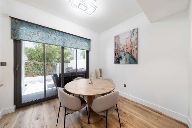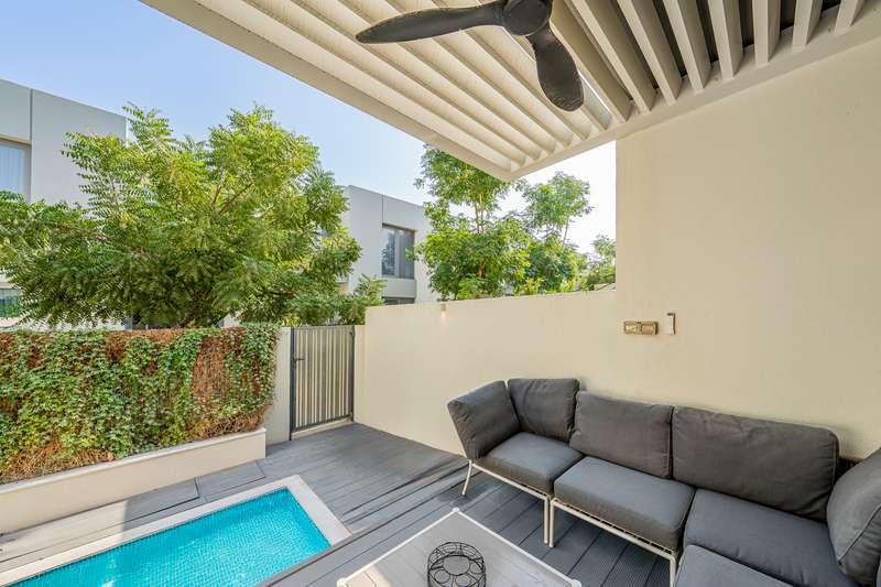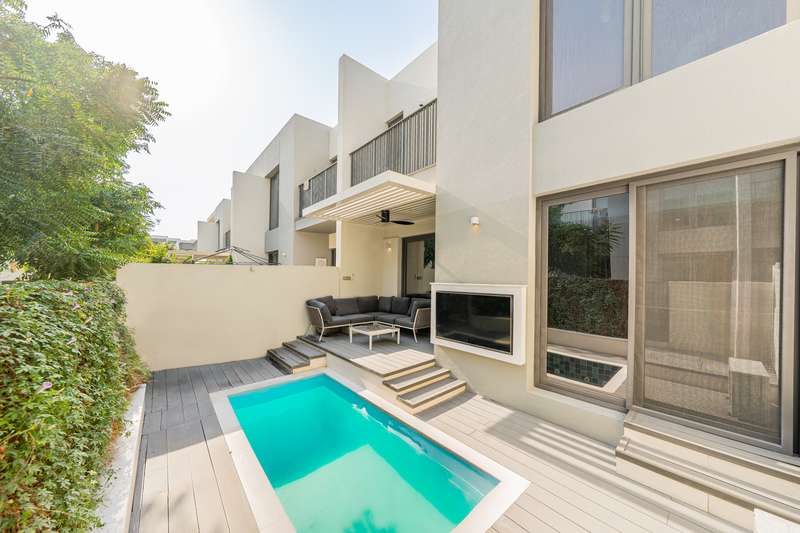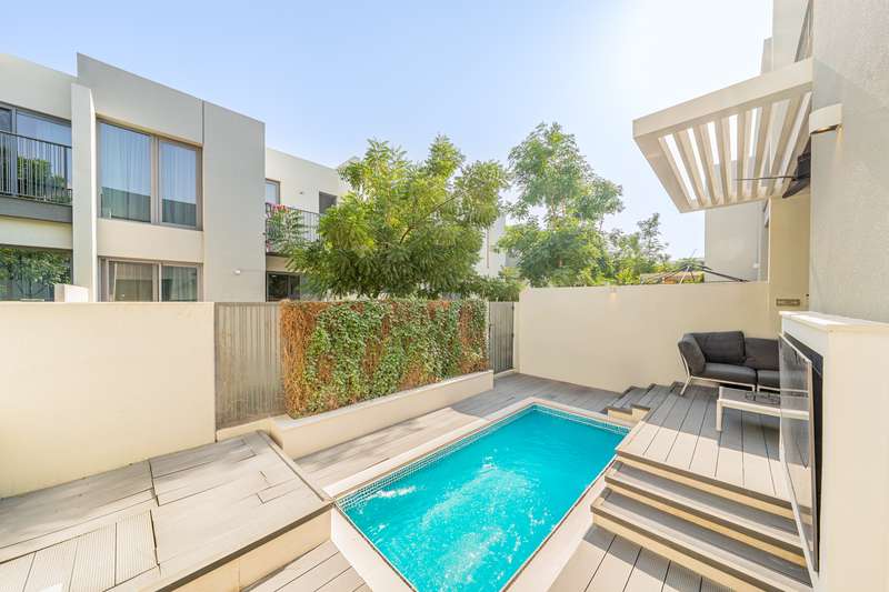 Betterhomes is proud to present this fully upgraded 3-bedroom + maid’s townhouse, ideally located opposite the pool in a prime location. This beautifully renovated home showcases high end finishes and beautiful upgrades throughout. The ground floor offers an open plan living and dining space, a fully upgraded kitchen with a full wrap finish, and a converted maid’s room now serving as a functional utility area with integrated cabinetry and appliance space. Upstairs features Two bedrooms with a shared bathroom, and a master bedroom with ensuite and terrace access. Stylish wooden flooring has been installed throughout the home, including the staircase. Property Features: Prime location opposite pool and park Private plunge pool added to the landscaped garden Open-plan layout with semi-divider and wooden slats Fully renovated with custom interior upgrades Utility room conversion with fitted kitchen units Wooden flooring throughout, including stairs Back-to-back unit Vacant on transfer BUA: 2,142 Sq. Ft. Plot: 1,511 Sq. Ft. Residents enjoy access to community pools, children’s play areas, parks, and walking trails. Contact Betterhomes today!