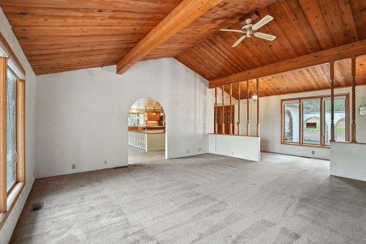 This property offers an exceptional opportunity for buyers interested in a project situated in a highly sought-after location. Set on 5.5 treed, private, and flat acres near Fairchild AFB, it includes a shop. The ranch-style home, sold as-is, presents a perfect chance for renovation, with the current price reflecting the need for cosmetic improvements. It features an open-concept living space with large windows, an updated kitchen from 2017 with stainless steel appliances and granite countertops, and a new en suite primary bathroom connected to a spacious primary bedroom. Additionally, two lots come with the shop and house, enhancing its potential.