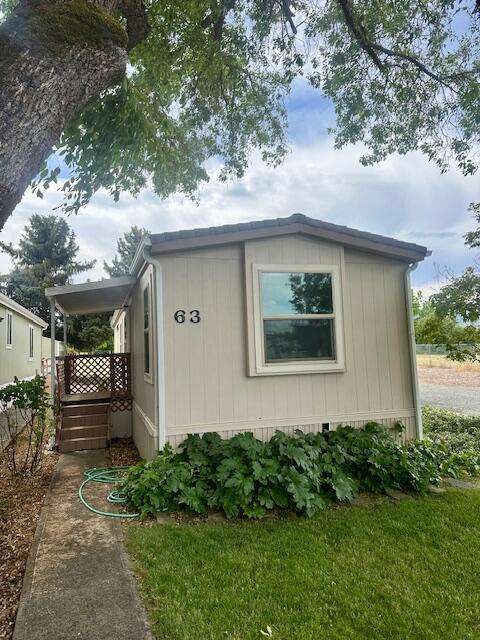 LOCATION!!! This manufactured home sits in the prime location at the end of the 55+ Blue Spruce Mobile Estates Park. Minutes from downtown Jacksonville. This 2 bedroom, 1 bath with 728 sq ft has been freshly updated inside with paint, carpets in the bedrooms and wood laminate floors in the living space. There is a large carport outside next to an open field that allows for views and quietness. Monthly dues are $575.00 covering irrigation, water and sewage. Appliances, washer and dryer are included. Vacant and move in ready.