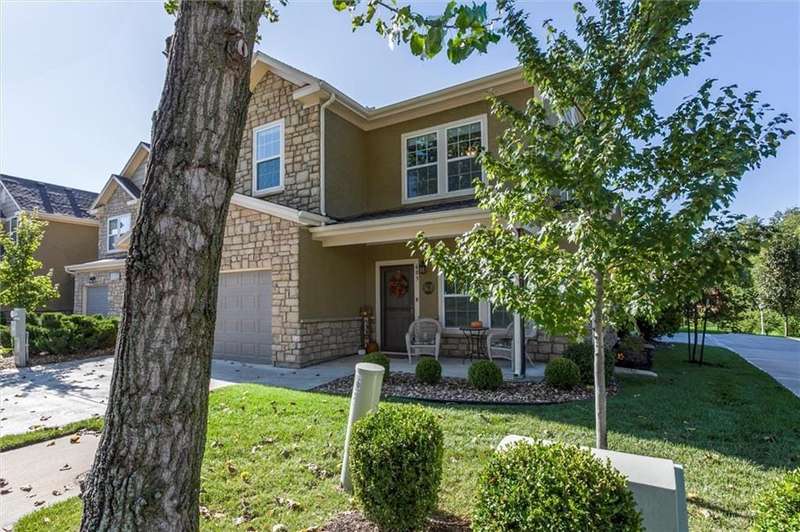 Welcome to the highly sought-after Parkview at the Wilderness! This like-new, maintenance-provided townhome offers upgrades throughout, an open floor plan, and easy access to the community pool and clubhousecombining both style and convenience. The kitchen features granite countertops, stainless steel appliances, a tile backsplash, and wood floors that flow through the main level. Upstairs, the primary suite boasts a walk-in bath and closet, along with two additional bedrooms, a full hall bath, and a convenient laundry room. Additional highlights include a spacious garage with keypad entry. The community offers a clubhouse with meeting space, kitchen, theater, library, exercise room, and poolall within walking distance. Located in the award-winning Blue Valley School District, this beautiful townhome is the perfect blend of comfort, upgrades, and prime location!