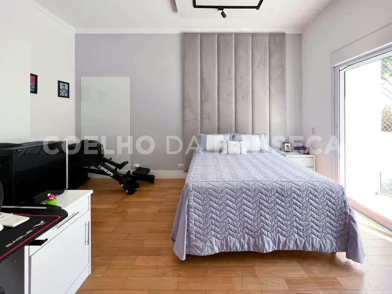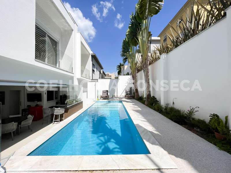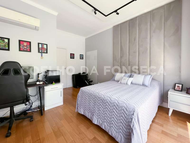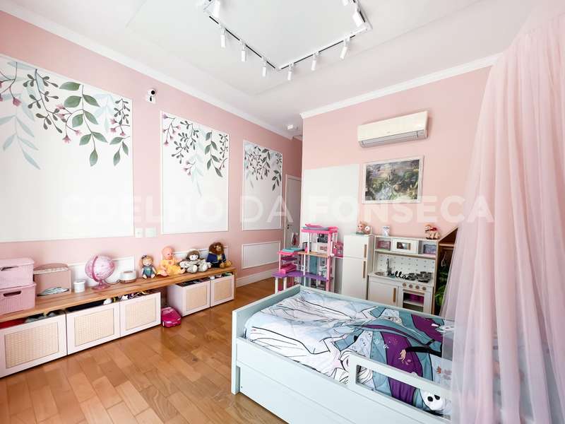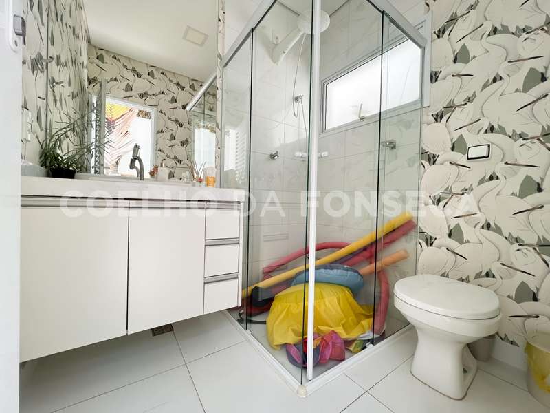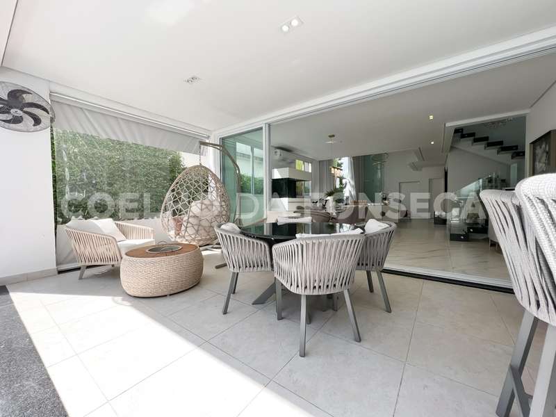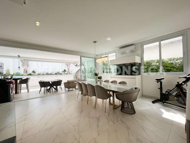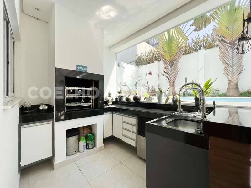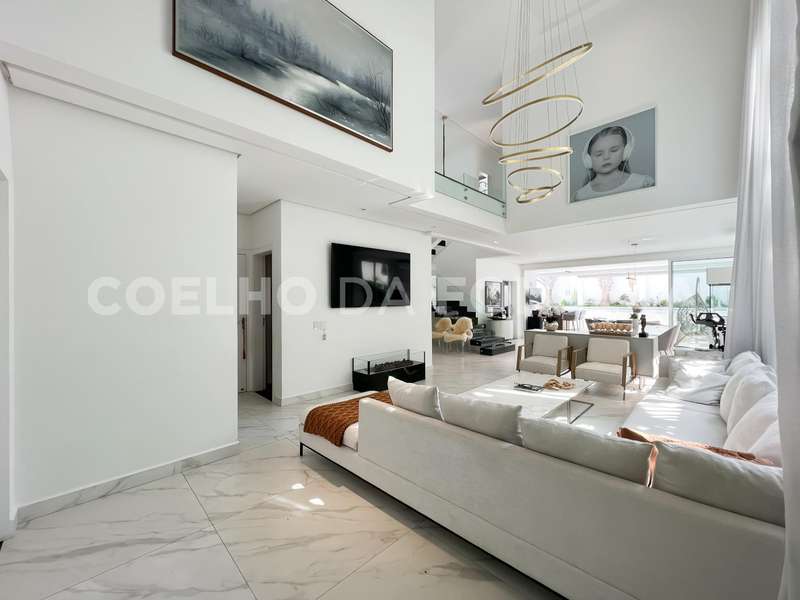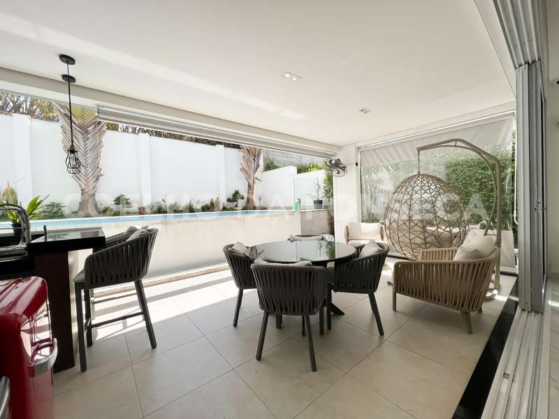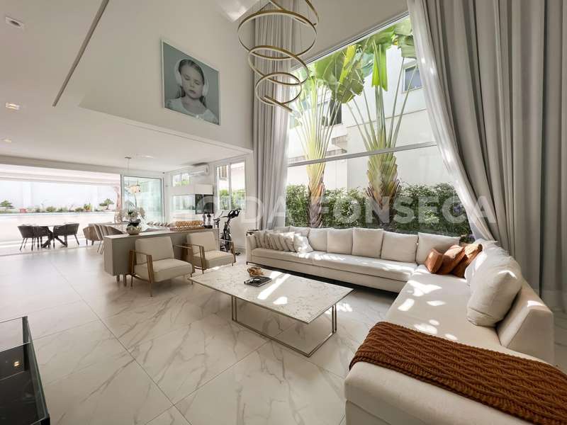 Excelente imóvel: 5 suítes, todas com varanda, persianas elétricas, ar-condicionado, 2 com closets, living para 3 ambientes, cozinha com todos eletrodomésticos, piscina com queda d.água e aquecimento solar, banheiro, 4 vagas de garagem e dependência de empregada.