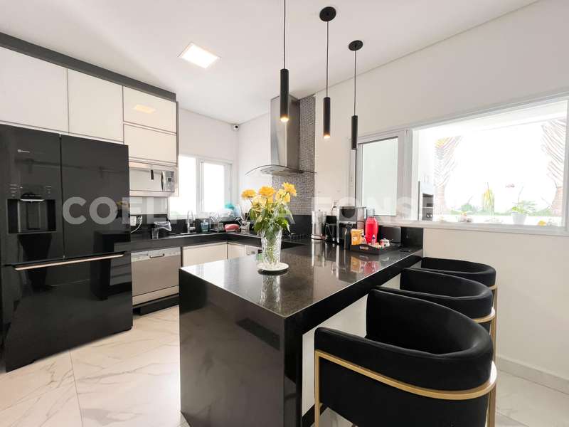 Casa no condomínio GENESIS 1, com 330m² área construída, 5 dormitório(s), 5 suíte(s), 4 vaga(s), 7 banheiro(s), varanda, aquecedor solar.