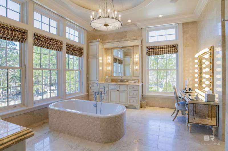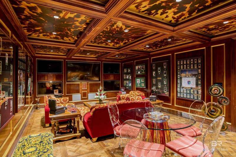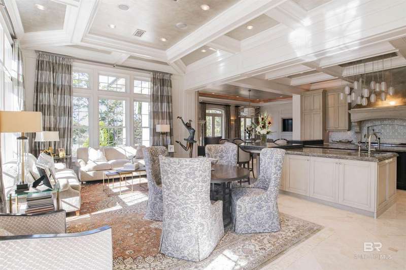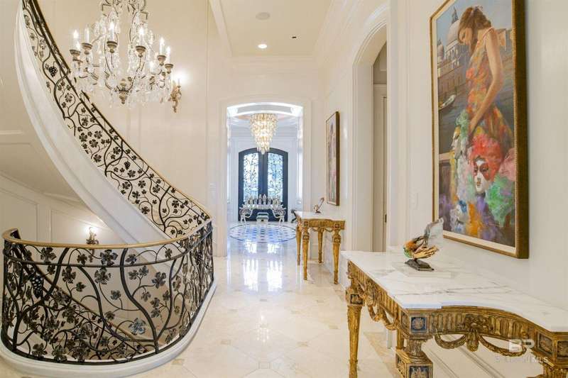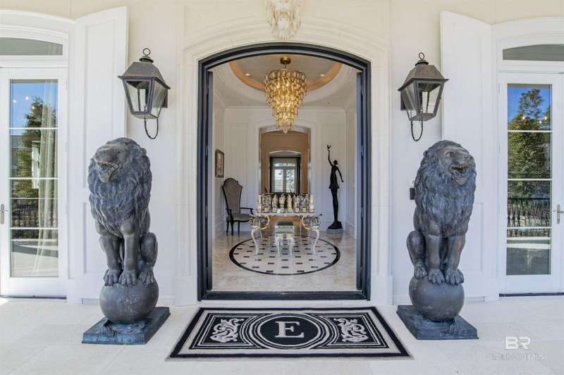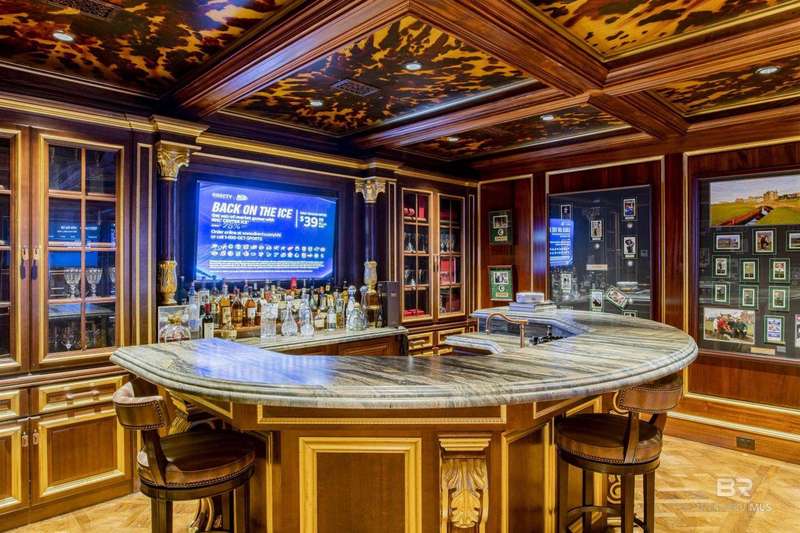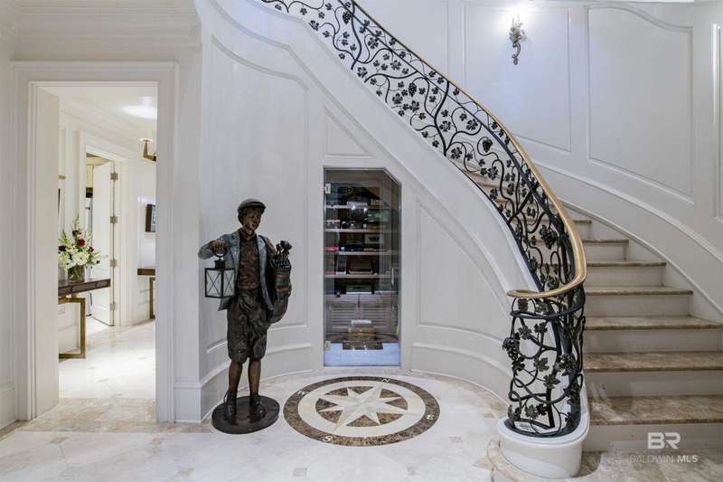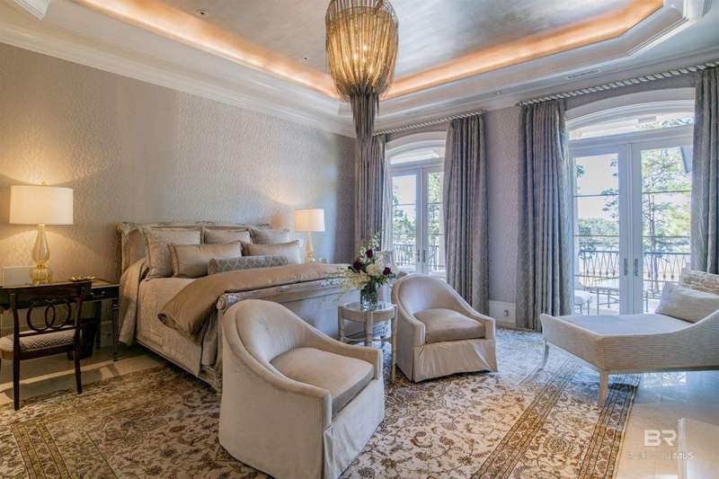 Luxury awaits in this gated Country Club community conveniently located between Pensacola, FL and Mobile, AL to the east and west along I-10, and Alabama beaches to the south and I-65 to the north. Several local airports within an hour's drive. Enjoy the clubhouse with restaurant and lounge, fishing, hunting, golf, as well as outdoor pools, exercise facilities, pro shop and a Chapel. This home is one-of-a-kind on 3 lots overlooking 4 holes of the award-winning golf course and the 200 acre Steelwood Lake. A gated circular drive to the Herringbone brick motor court is the perfect entry to this magnificent property. Completely fenced, the home, 2200 sf separate garage, and pool house offer one's own private resort. Step inside to find pure elegance with two toned marble floors throughout the main level and oak flooring in third level bedrooms. Kitchen features WOLF and Subzero appliances and a double island. The open concept is perfect for entertaining on a grand scale! In the master suite find His and Hers closets through a stunning bathroom with all the natural light. Enjoy heated floors and even a TV in the vanity mirror while you soak in the jetted tub overlooking the course and lake. Follow the marble steps and custom iron railing downstairs to the Sports Club, Wine Cellar, and Humidor to make the ultimate impression on your guests. The guest suite, office, and laundry facility can be found on the ground level just steps from the 3 car and 2 golfcart garage with 3 walk-in storage closets. On the 3rd level, 4 bedrooms and 3 baths offer a quiet escape for children and guests to rest. The pool deck and pool house are ideal for enjoying the abundance of warm, sunny days in South Alabama. Spend the evenings strolling the grounds in awe of the two fountains and elevated views of the golf course and sunsets over the lake. Whether for a weekend or a lifetime this is a magical place to unwind and recharge! Buyer to verify all information during due diligence.