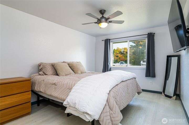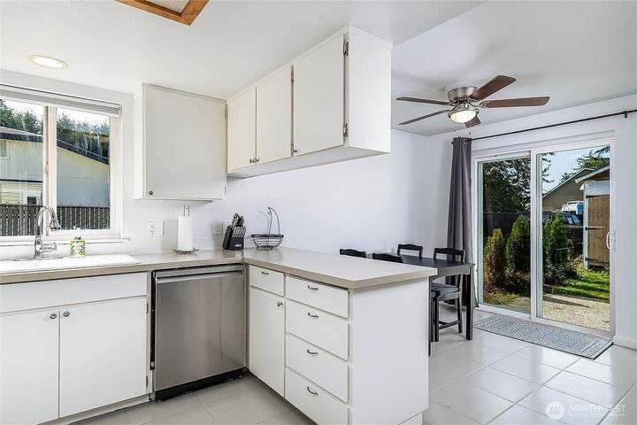 Set at the end of a quiet cul-de-sac this updated Enumclaw rambler offers both comfort and convenience. Fresh flooring flows through a light-filled layout starting with a spacious living room and an open kitchen that connects to the dining room and back patio for seamless indoor-outdoor living. The primary suite features a walk-in style closet with dual sides and a private bath Two additional bedrooms offer versatility for guests, a home office, or creative space. Outside the fully fenced backyard is ready for play pets or gardening with a large storage shed RV parking and an attached garage for added utility Close to schools shopping and restaurants this move-in-ready home combines everyday function with a location that keeps you connected
