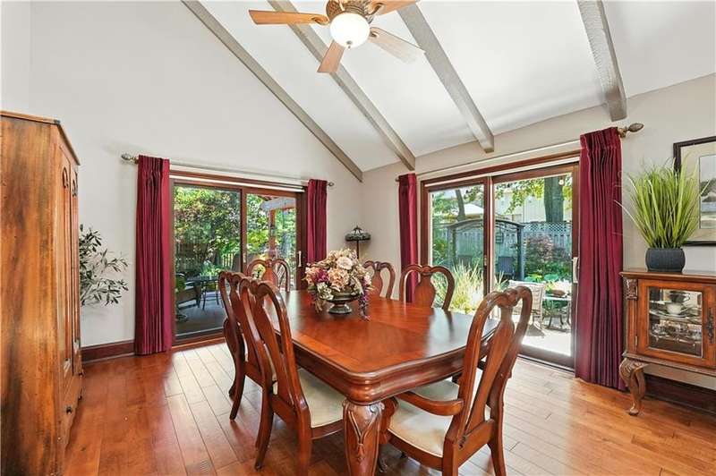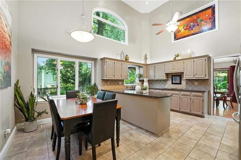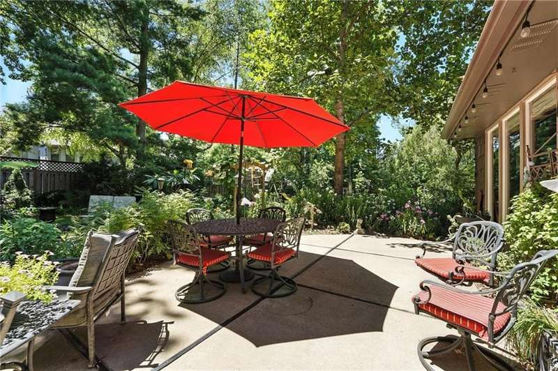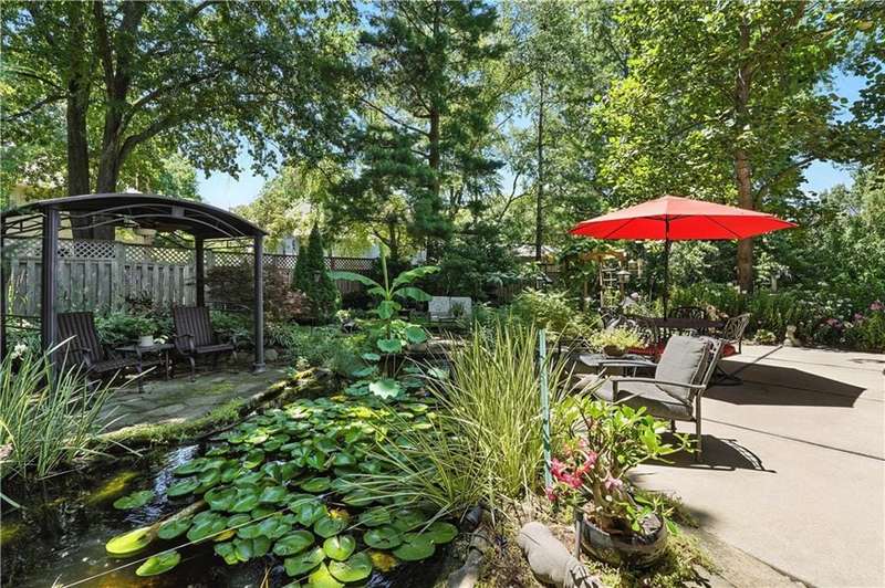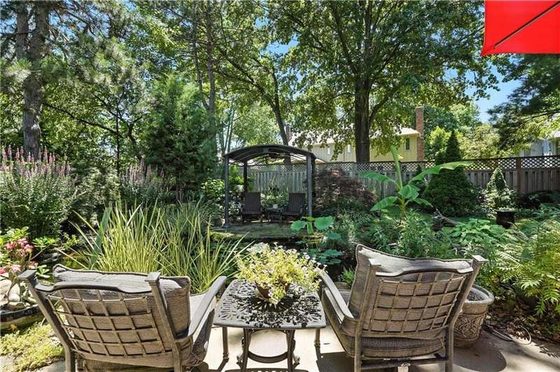 Welcome to this spacious Nottingham Forest gem with a truly exceptional backyard retreat. Designed by a Master Gardener, the fully fenced yard is a peaceful oasis featuring koi ponds, lush landscaping, and a covered deckideal for outdoor dining, entertaining, or unwinding. Inside, you'll find vaulted ceilings and skylights throughout the living room, along with a brick fireplace and direct access to the backyard. The generous kitchen also features vaulted ceilings. With three bedrooms on the main level, all with brand new carpet, an additional bedroom upstairs, and a non-conforming bedroom in the finished lower level, there's space for everyoneplus, dont forget a dedicated workshop in the unfinished portion of the basement for hobbies or extra storage, which also features a staircase going up to the garage. Located in the desirable Nottingham Forest subdivision, this home offers access to a community pool, playground, and clubhouse. With award-winning Blue Valley schools, nearby shopping, dining, and easy highway access, this home offers the perfect blend of space, comfort, and serene outdoor living.