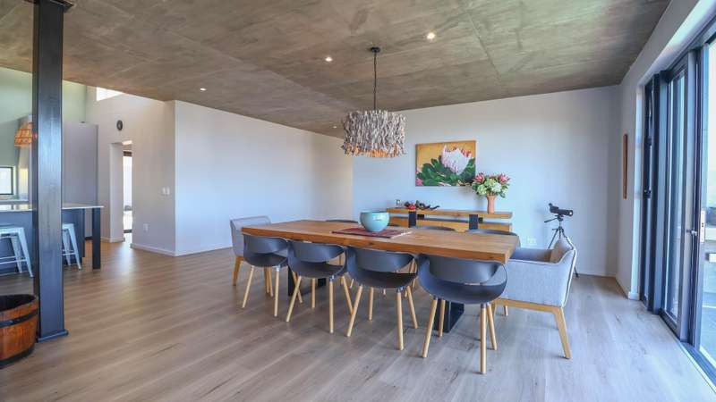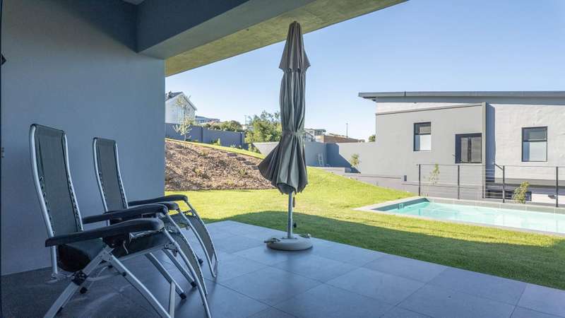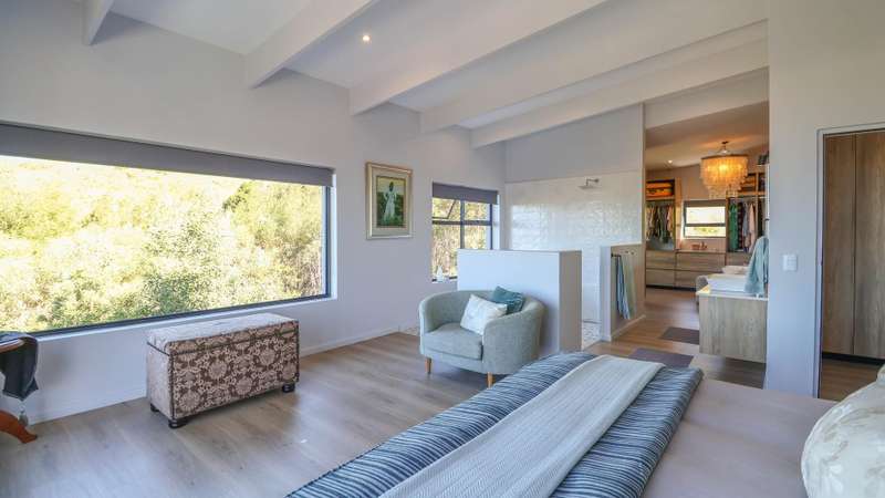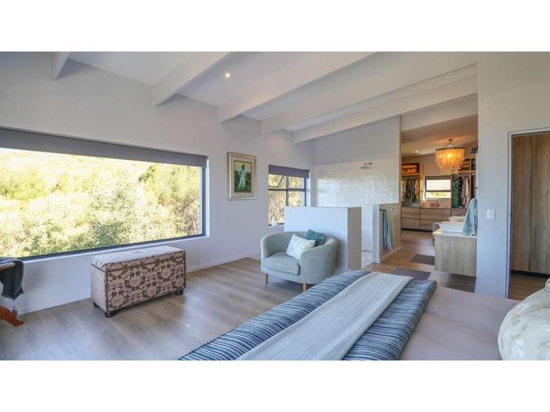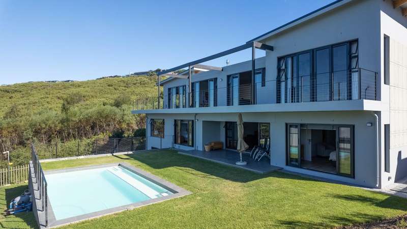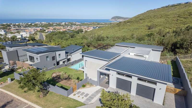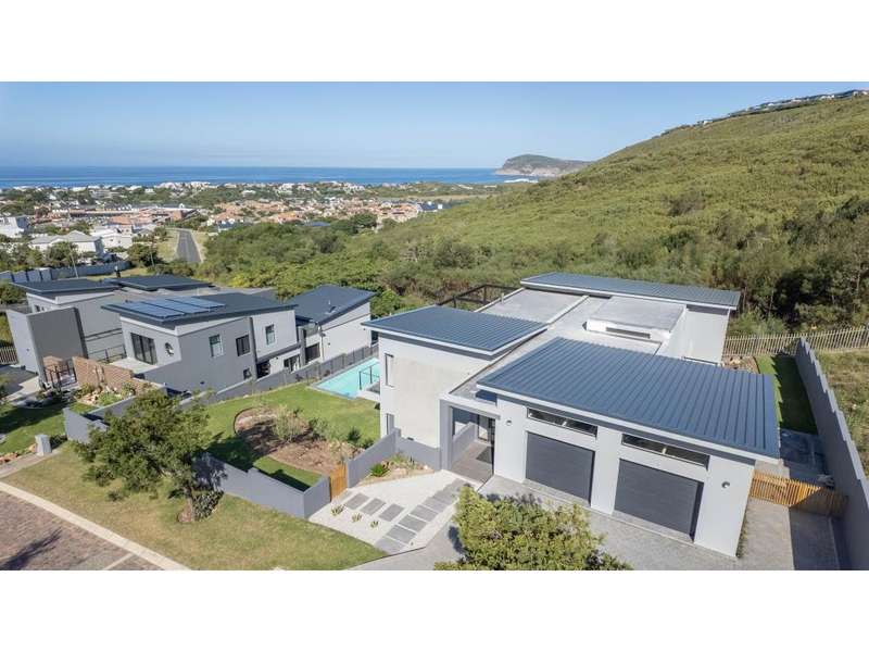 EXCELLENCE IS THE DESCRIPTIVE WORD FOR EVERY ASPECT OF THIS LOVELY HOME! TRI-MANDATE This modern, spacious, and versatile home is in a premier secure lifestyle estate next to a green belt area. The top floor of this home features an open-concept lounge and dining room (with a built-in wood-burning heater) and a spacious kitchen with a separate scullery that gives direct access from the garage to the home. The expansive balcony with a built-in barbeque provides the perfect space to relax or entertain while enjoying panoramic views of the Bay, stretching from the Robberg Nature Reserve to Nature?ÇÖs Valley, framed by the majestic Tsitsikamma Mountains. With a guest toilet, indoor fireplace, and flexible layout, the top floor is designed to cater to both large families and those with mobility challenges. The main bedroom has views over Formosa Bay and an en-suite bathroom with a spacious walk-in closet and shoe cupboard. The ground floor is equally impressive, with three generous bedrooms, each with its ensuite bathroom, offering comfort and privacy for family members or guests. The kitchen and lounge/dining area flow seamlessly onto the outdoor covered patio, with direct access to the pool, creating an ideal space for alfresco living. This home also includes a self-contained flat, perfect for visitors or rental opportunities, as well as a second kitchen that could cater to specific dietary needs. With an inverter for reliable power and a secure environment, Whale Rock Hill Estate promises a lifestyle of comfort, convenience, and serenity. Call Peter or Laurette to view.