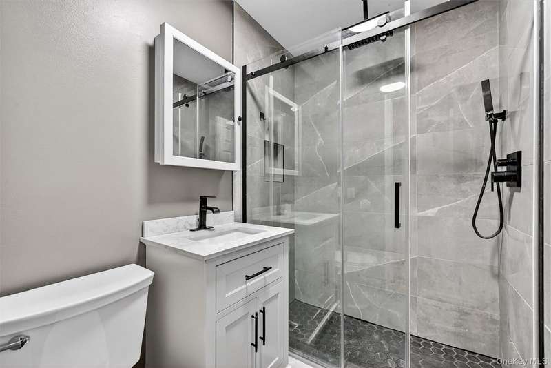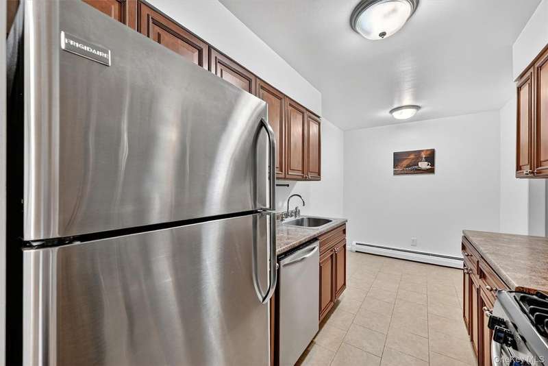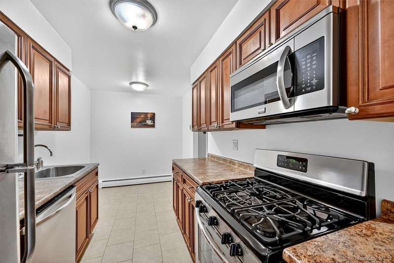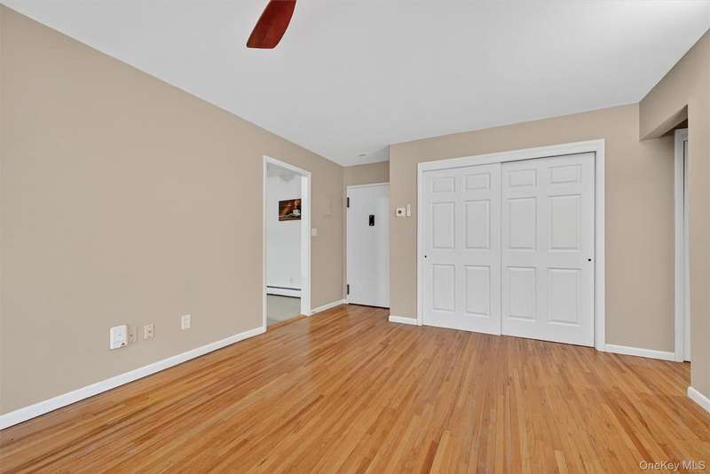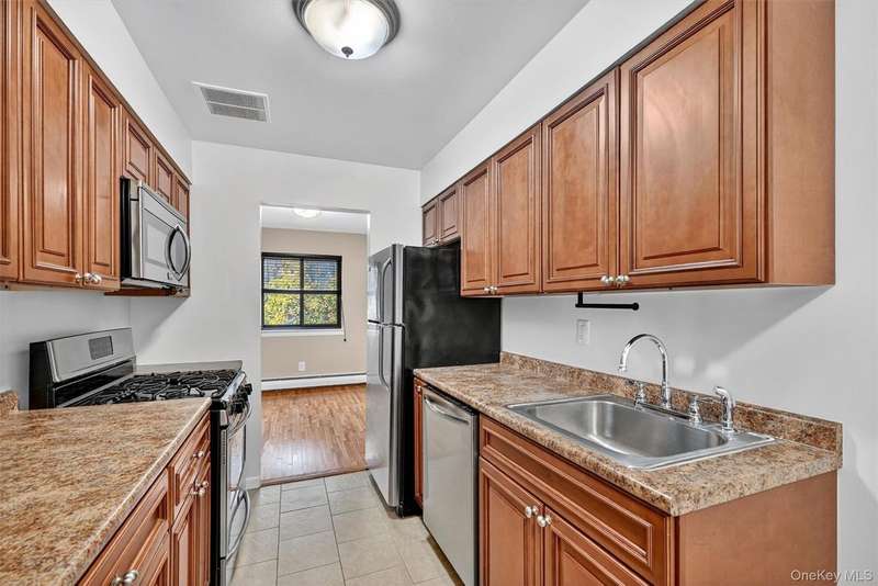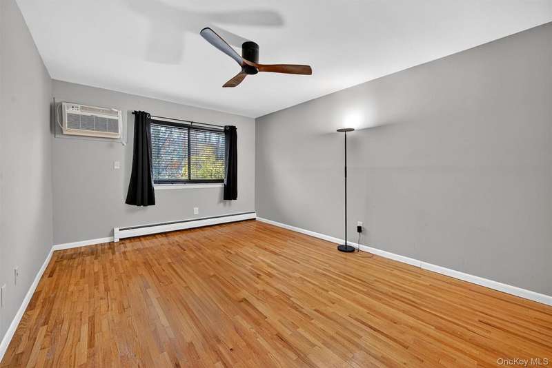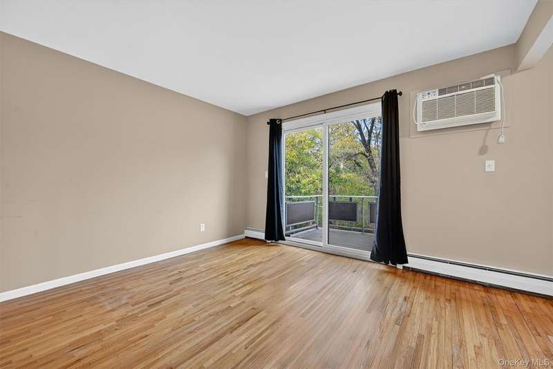 Welcome to this beautifully appointed one-bedroom where natural light and modern design create effortless living. Gleaming hardwood floors flow throughout the open floor plan, providing generous space for living, dining, and entertainment. Sliding glass doors fill every corner with warm natural light, while your private balcony overlooks peaceful greenery. Generous closets offer excellent storage throughout. The stunning bathroom renovation features sophisticated gray tile, a frameless glass rainfall shower, contemporary white vanity, and sleek matte black fixtures. The galley kitchen includes a gas range, dishwasher, refrigerator, and durable tile flooring. Assigned parking sits directly at your door with basement laundry and private storage adding convenience. The pet-friendly community offers resort-style amenities including a pool, fitness center, sauna, hot tub, playground, dog park, gazebo, and picnic areas. Located under half a mile from Palisades Interstate Parkway and Route 202, this home provides seamless NYC and Hudson Valley access. Palisades Center Mall and Woodbury Common Outlets deliver nearby shopping, while Harriman State Park sits four miles away with hiking and kayaking. Patriot Hills Golf Club, Haverstraw Marina, and Nyack's restaurants are all within reach, with Cold Spring, Rhinebeck, and Hudson offering weekend escapes. Perfect for first-time buyers, professionals, downsizers, or investors. Turnkey and move-in ready.