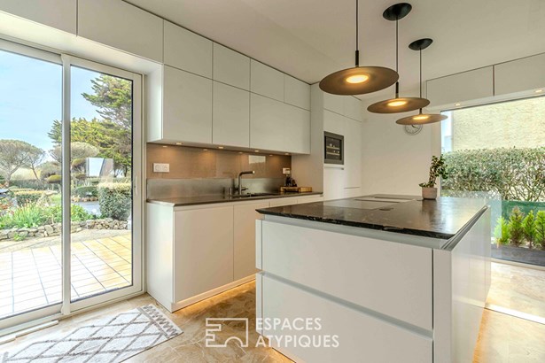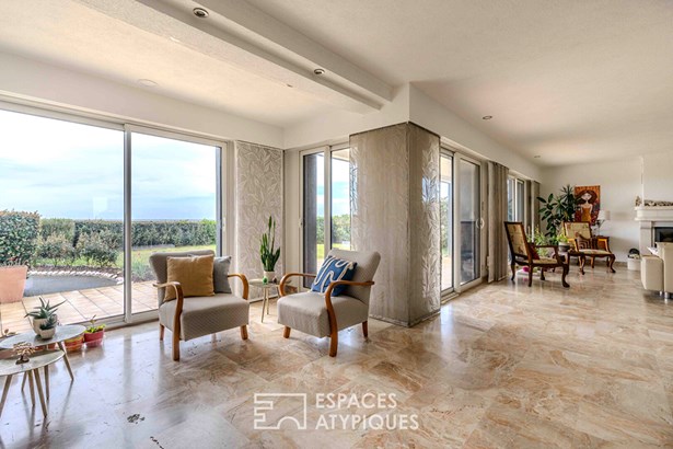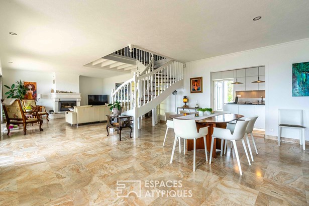 Enjoying an ideal location in the immediate vicinity of La Govelle beach with breathtaking views of the ocean, this 260m2 architect-designed villa built in 1990 rests on a pleasant enclosed and landscaped garden of over 1500m2. On the ground floor, it offers a vast living room of nearly 70m2, ultra-bright thanks to numerous openings, which extends onto the terrace facing the sea. There is a living room with an insert fireplace as well as a dining area decorated with a stove; facing it we discover a magnificent professional kitchen with high-end services. Still on one level, the villa distributes a bedroom with shower room and a linen room. A beautiful mahogany wood art staircase leads to the sleeping area which develops 4 suites with shower room or bathroom, two of which have a terrace overlooking the ocean. The second floor, already furnished and with great potential, could serve as an office, games room or guest room. A double garage and a large garden shed complete this expressive property. Energy class: C Climate class: A Estimated average amount of annual energy expenditure for standard use, established from 2021 energy prices: between EUR1,610 and EUR2,210. Information on the risks to which this property is exposed is available on the Georisques website: www.georisques.gouv.fr