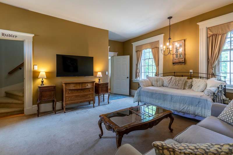 Glimmerstone Mansion an extraordinary legacy estate where timeless elegance meets modern sophistication. Set on 2.4 beautifully landscaped acres, this iconic property listed on the National Historic Register has been meticulously restored, thoughtfully upgraded, and exquisitely furnished. At the heart of the estate is the grand 10-bedroom mansion, where nearly every bedroom and gathering space is graced with a stately fireplace, evoking the charm of a bygone era. Five bedrooms offer ensuite baths, each with spa-style finishes, while the owner s private apartment ensures comfort and privacy. Enjoy central air conditioning, high-speed internet, and cell service ideal for today s work-from-home lifestyle. An entertainer s dream, the lower level reveals an English-style pub complete with a full bar and pool table, opening to an expansive bluestone patio. Step outside to relax in the 6 to 8-person hot tub, gather around the fire pit, or unwind on the gracious covered porch. The estate incl